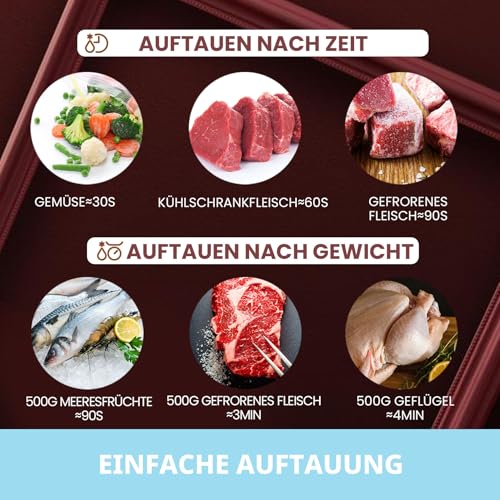 - 8 voreingestellte Programme: 8 voreingestellte Programme erleichtern die Verwendung: automatische Aufbewahrung, Gemüse, Fisch, Fleisch, Pasta, Kartoffeln, Pizza, Suppe