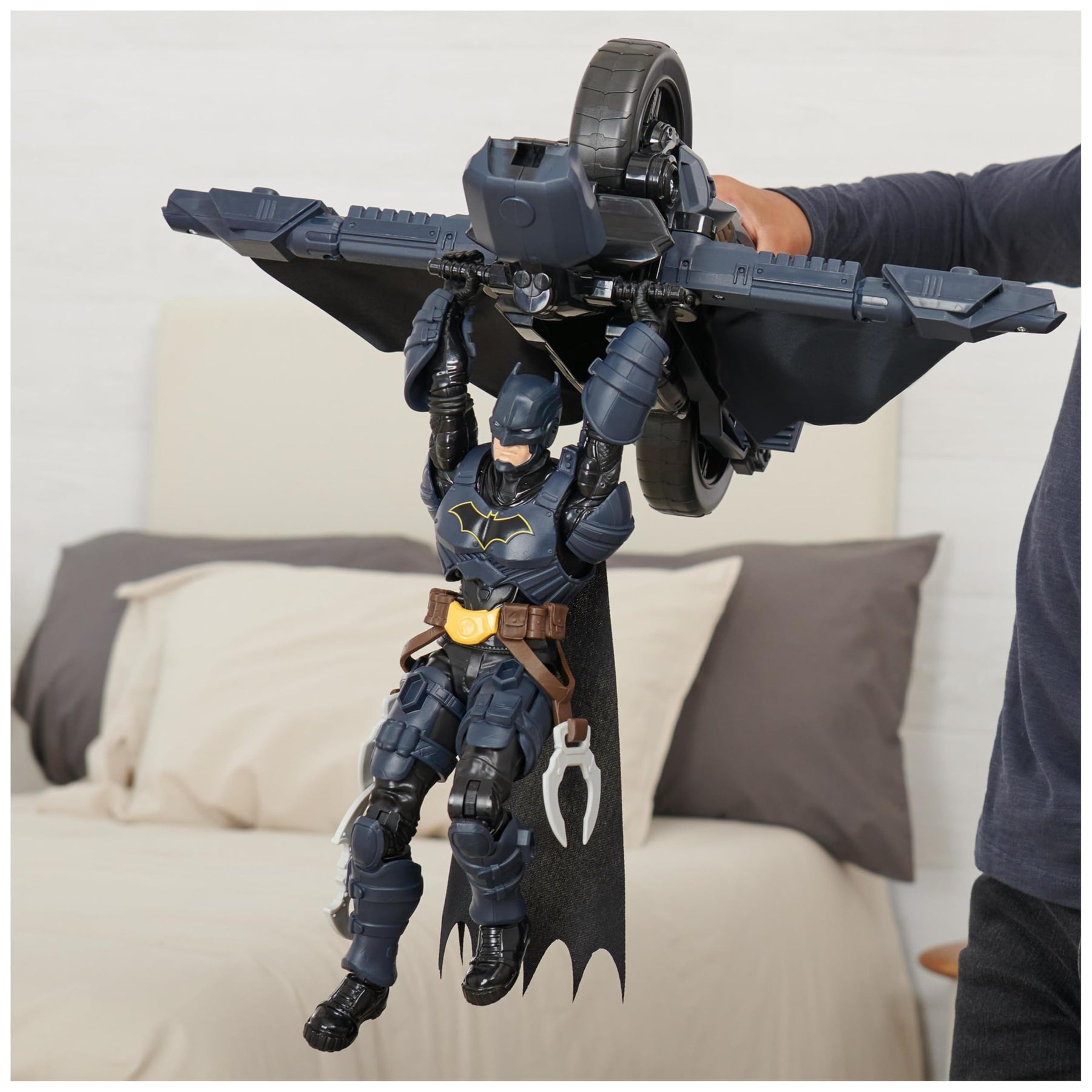 • Das beeindruckende 2-in-1 Batcycle, das authentisch und mit viel Liebe zum Detail gestaltet ist, hat eine Länge von ca. 40 cm und eine Flügelspannweite von mehr als 45 cm, groß genug für große Abenteuer