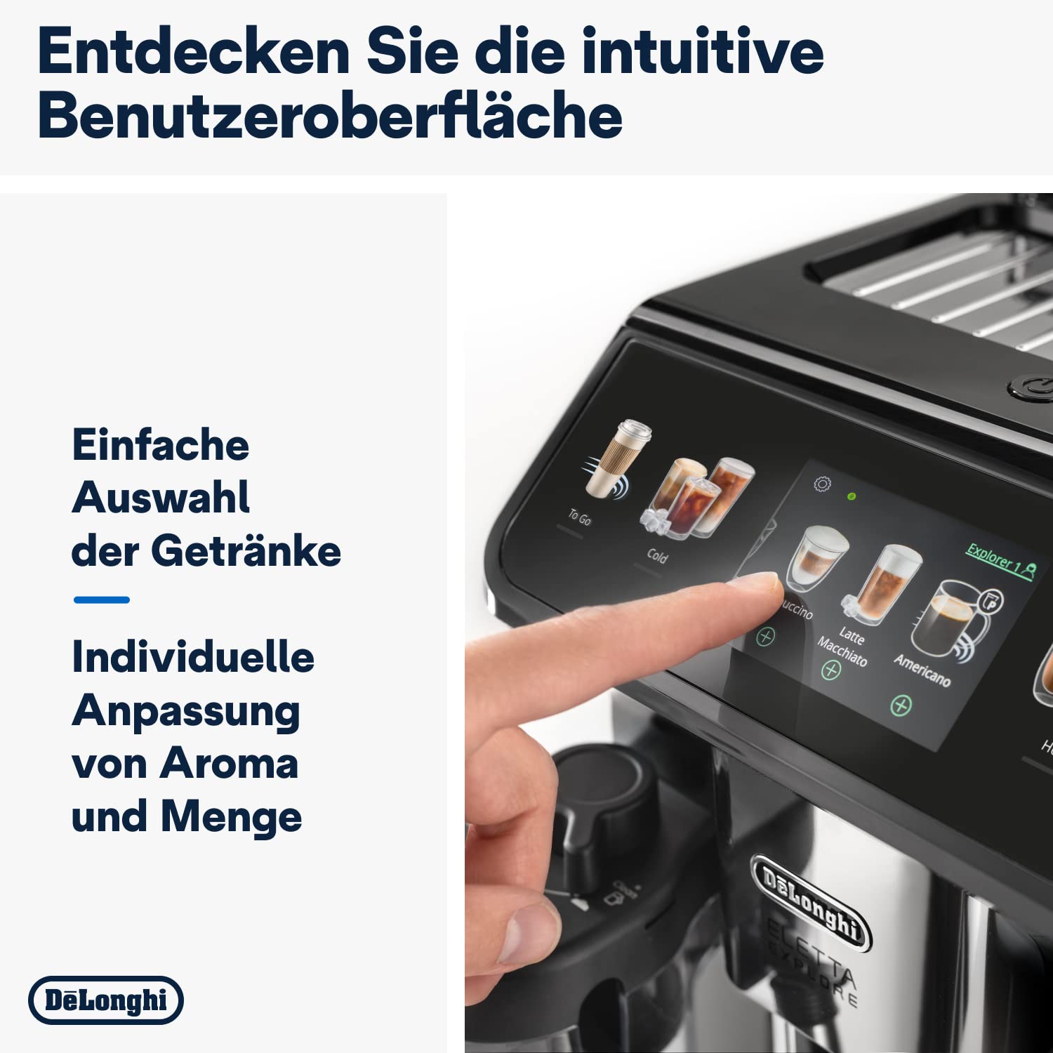 Einzelheiten: Hinter seinem edlen dunkelgrau lackierten Gehäuse bietet der neue De'Longhi Eletta Explore Kaffeevollautomat mehr als 50 heiße, kalte und Kaltbrühgetränke, die es zu entdecken gilt. Genießen Sie automatisch heißen Milchschaum mit der LatteCrema Hot Technologie* und erfrischende kalte und kalt gebrühte Kaffeegetränke mit der LatteCrema Cool* und Cold Extraction Technologie, zu Hause oder unterwegs mit der praktischen To-Go Funktion. *Die Qualität des Schaums kann variieren, abhängig von der Art der verwendeten Milch oder den pflanzlich basierten Getränken, dem Markennamen, den Zutaten und den Nährwerten.