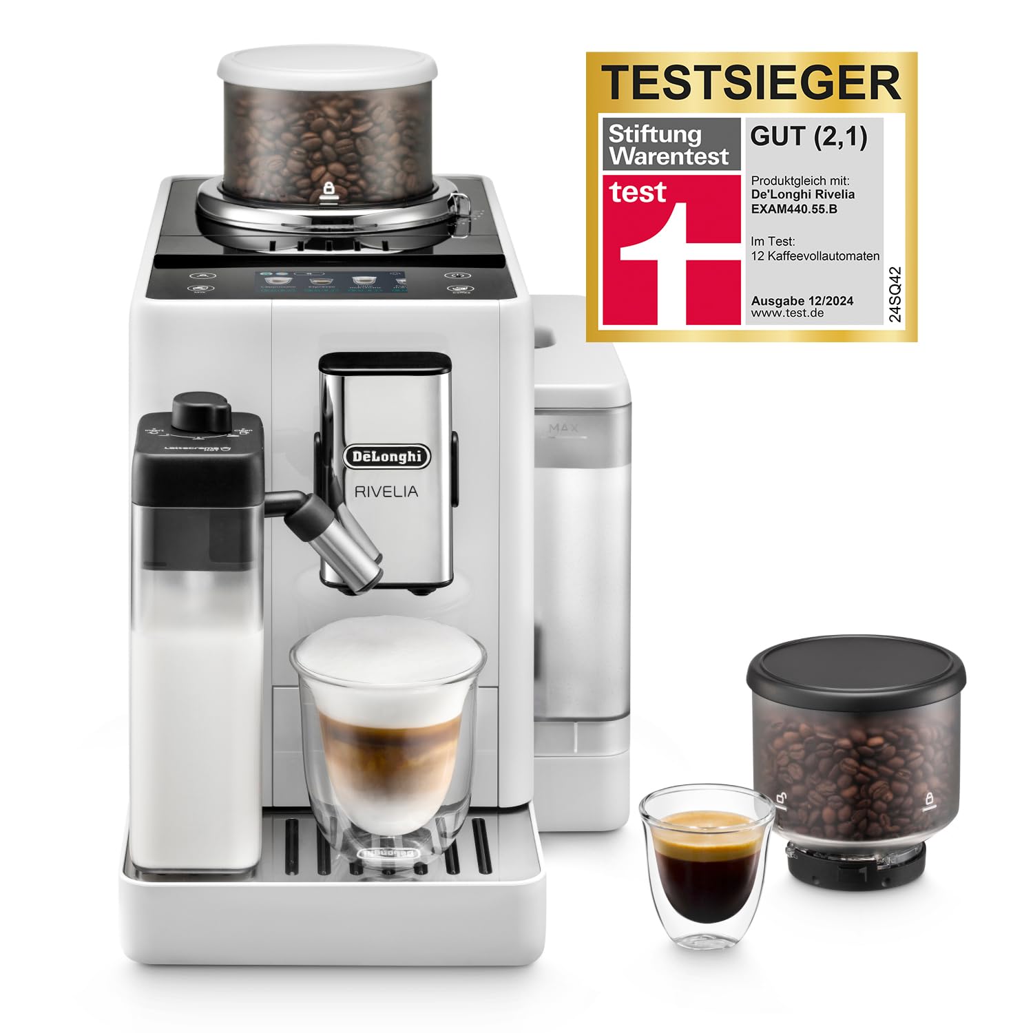 - STIFTUNG WARENTEST TESTSIEGER (2,1) – Der Rivelia Kaffeevollautomat von De'Longhi ist der Testsieger der aktuellen Stiftung Warentest (Ausgabe 12/24)