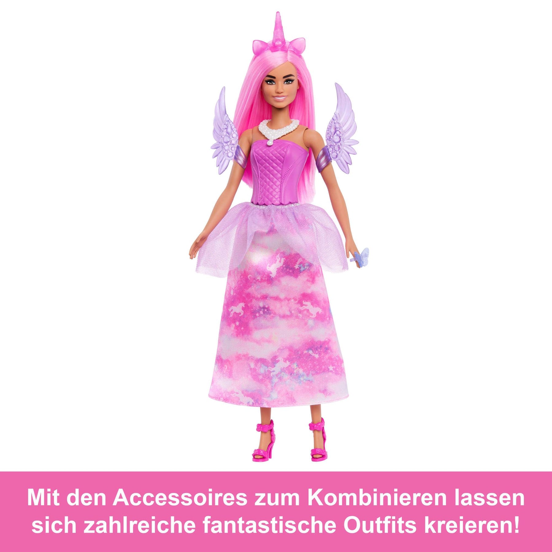 • Zu den weiteren Zubehörteilen gehören 2 Paar Schuhe, ein Kamm, ein Haarband und mehr für grenzenlosen Styling- und Spielspaß!