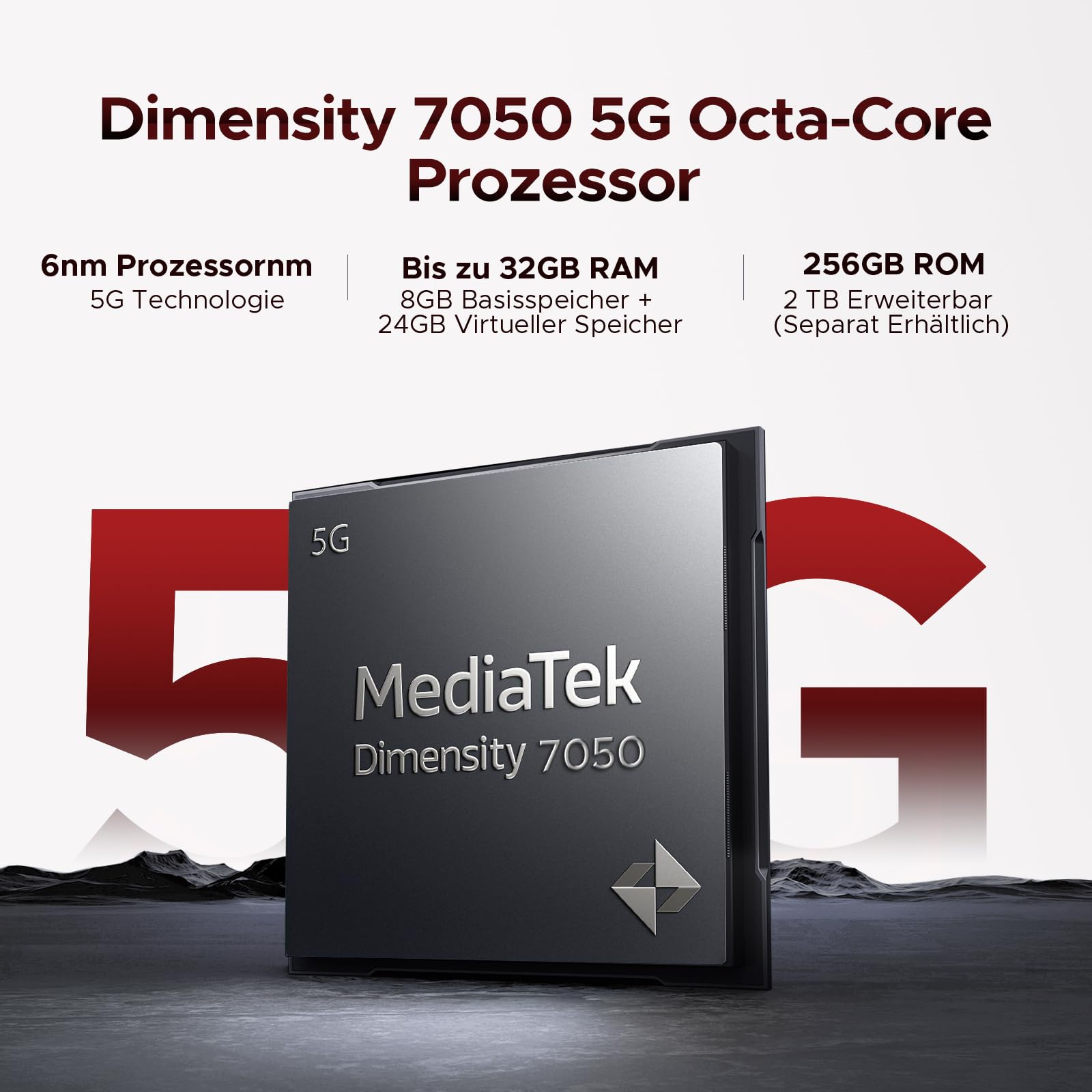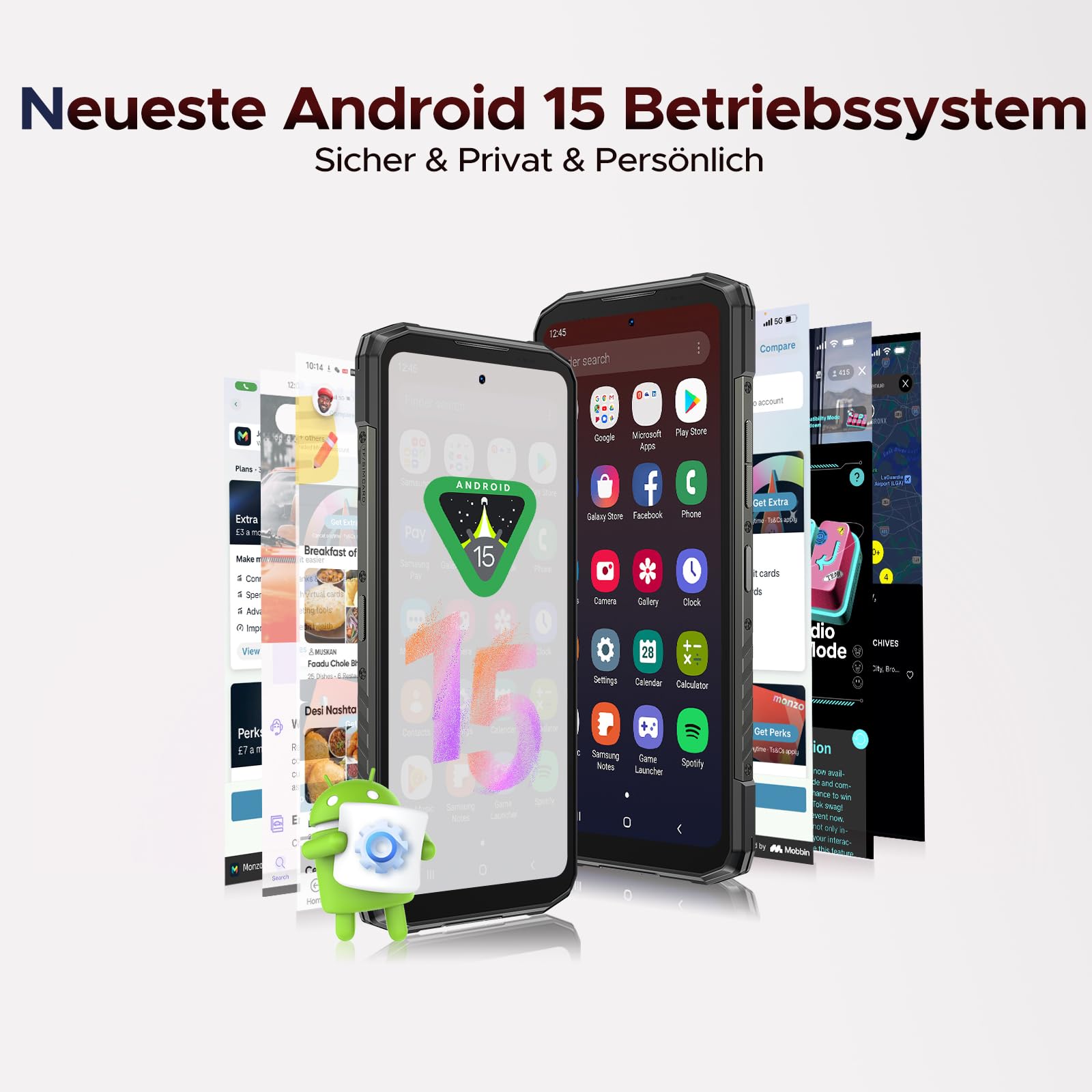 - 5G Dimensity 7050 Prozessor & Android 15 Outdoor Handy: Dieses Blade 20 Play outdoor handy ohne vertrag ist mit dem fortschrittlichen 6nm Dimensity 7050 Flagship 5G Chip ausgestattet, der mit einer Taktfrequenz von bis zu 2,6GHz arbeitet und 5G Netzwerke unterstützt, sodass Sie ein stabiles und schnelles 5G-Erlebnis genießen können. Gleichzeitig verfügt das doogee smartphone über das neueste Android 15 Betriebssystem, das Energieeffizienz und Sicherheit weiter optimiert.