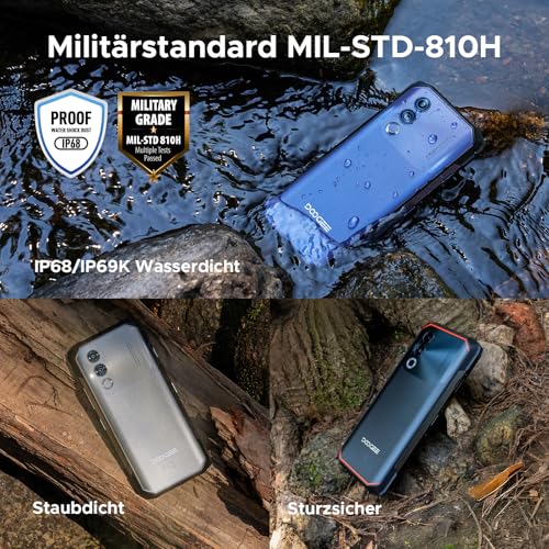 - 【IP68/IP69K & MIL-STD-810H】DOOGEE Blade 20 Android 15 Outdoor Handy ohne Vertrag ist für den robusten Einsatz im Freien konzipiert, verfügt über die Zertifizierung für Wasser- und Staubdichtigkeit nach IP68/IP69K und erfüllt die Stoßfestigkeits- und Haltbarkeitsstandards MIL-STD-810H. funktioniert bei extremen Temperaturen (-20 °C bis 55 °C) und hat mehrere Falltests bestanden. Outdoor Smartphone unterstützt Gesichtserkennung und seitliche Fingerabdruckerkennung