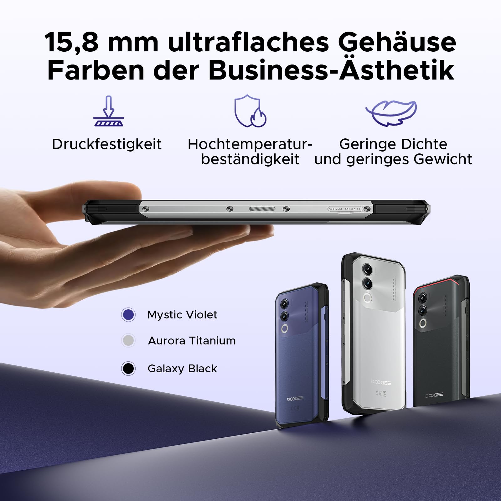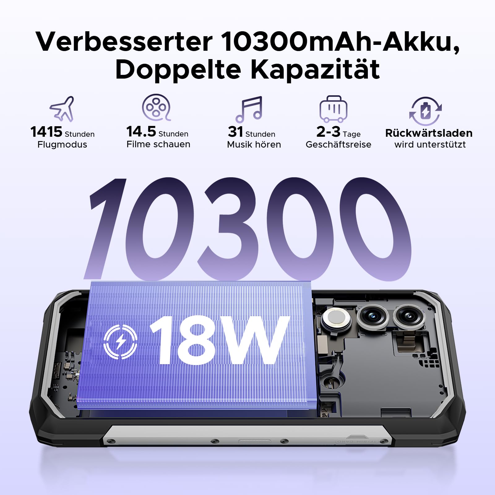 - 【Großer Akku 10300mAh + 15,8mm Ultradünnes Gehäuse】DOOGEE Blade 20 Outdoor Smartphone bietet eine beeindruckende Akkukapazität von 10300 mAh und unterstützt 18W Schnellladen. Obwohl es eine große Akkukapazität bietet, ist das Gehäuse nur 15,8 mm dick und das gesamte Gerät wiegt lediglich 327 Gramm, was das Blade 20 im Vergleich zu anderen Baustellenhandys sehr tragbar macht. Dieses Outdoor Handy Android 15 unterstützt das Rückwärtsladen und bietet Ihnen eine mobile Powerbank für den Notfall