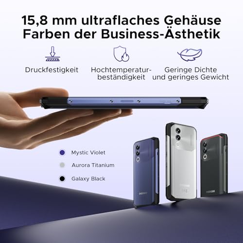 - 【Großer Akku 10300mAh + 15,8mm Ultradünnes Gehäuse】DOOGEE Blade 20 Outdoor Smartphone bietet eine beeindruckende Akkukapazität von 10300 mAh und unterstützt 18W Schnellladen. Obwohl es eine große Akkukapazität bietet, ist das Gehäuse nur 15,8 mm dick und das gesamte Gerät wiegt lediglich 327 Gramm, was das Blade 20 im Vergleich zu anderen Baustellenhandys sehr tragbar macht. Dieses Outdoor Handy Android 15 unterstützt das Rückwärtsladen und bietet Ihnen eine mobile Powerbank für den Notfall
