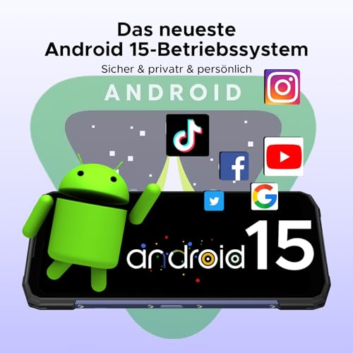 - 【Neueste Android 15 System+Octa Core】DOOGEE Blade 20 Android 15 Outdoor Handy ist mit dem neuesten Android 15 System ausgestattet, mit einem personalisierteren Schnittstellendesign bei gleichzeitigem Schutz der Privatsphäre und der Systemsicherheit, sodass Sie die neuen Änderungen und Funktionen des System-Upgrades erleben können. Der leistungsstarke T7200 Octa-Core-Chip des DOOGEE-Smartphones sorgt für ein reibungsloses Spielerlebnis und ermöglicht Ihnen die effiziente Erledigung von Arbeiten