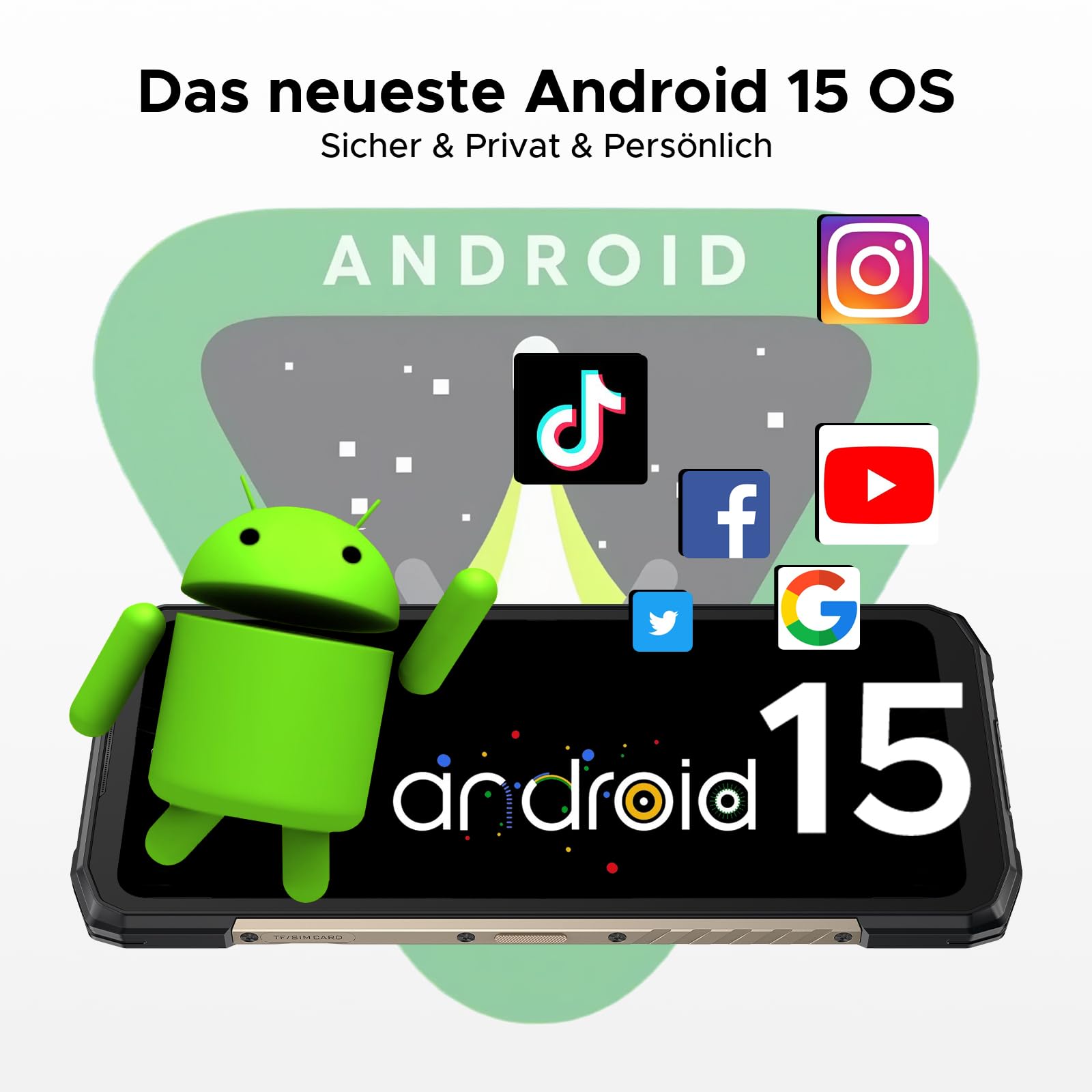 - 🚀🚀【32GB RAM & 256GB ROM / 2TB & LPDDR5】DOOGEE Blade 20 Turbo outdoor handy Android 15 ist mit bis zu 32 GB RAM (8 GB + 24 GB erweiterter RAM) ausgestattet und kann mehrere Anwendungen gleichzeitig ausführen. Bietet ein hervorragendes Multitasking-Erlebnis.Darüber hinaus verfügt das DOOGEE Blade 20 Turbo Outdoor Smartphone ohne vertrag Android 15 über 256 GB internen speicher (erweiterbar auf bis zu 2TB über microSD Karte) und bietet somit reichlich Platz für andere Apps, Fotos und Videos.