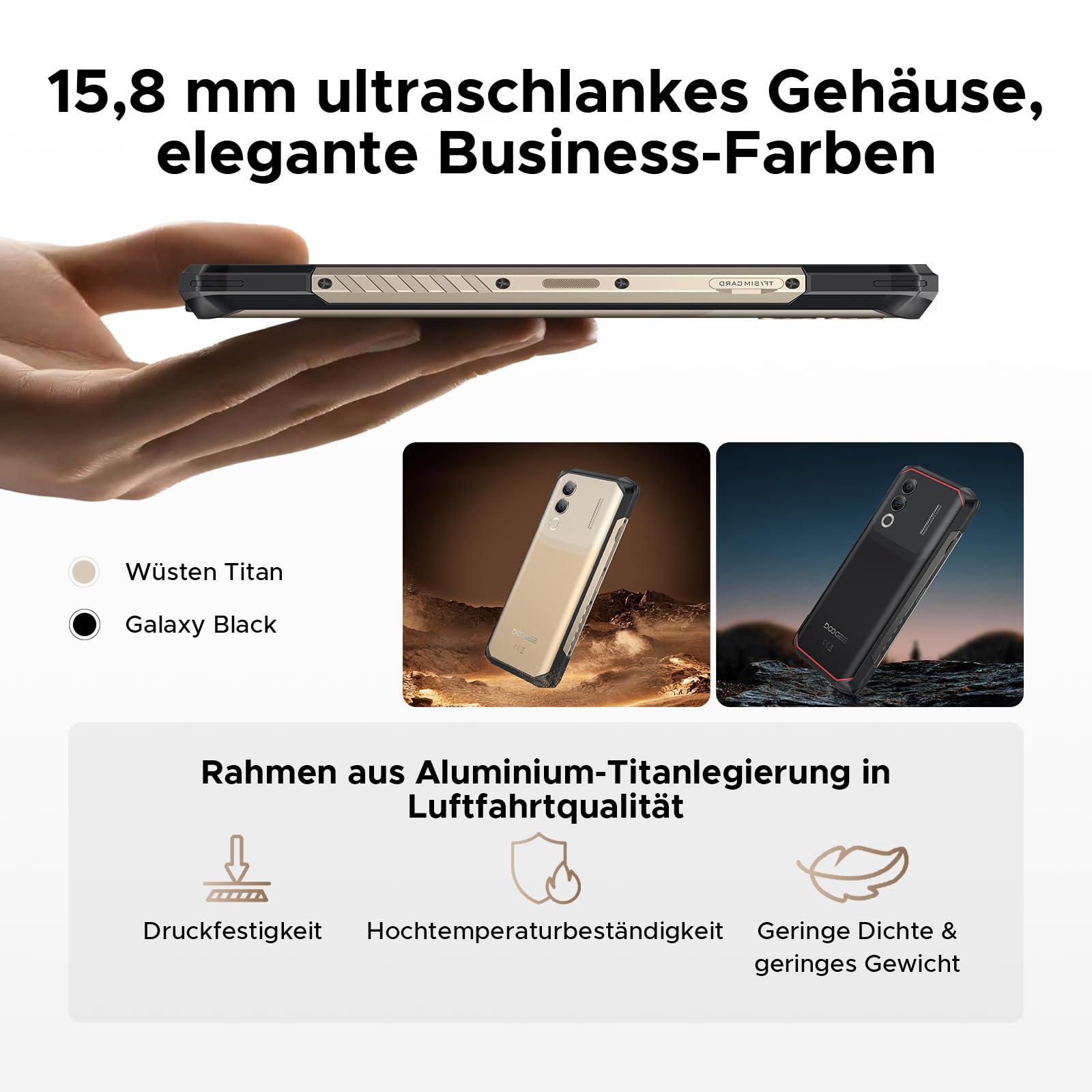 - 👑👑【5G Dimensity 7050 & Gemini AI & Android 15】DOOGEE Blade 20 Turbo Outdoor Handy ohne Vertrag ist mit dem neuesten Android 15 System ausgestattet, mit Dimensity 7050 5G mit bis zu 2,6GHz Frequenz. Der Prozessor sorgt für ein reibungsloses und nahtloses Betriebserlebnis und eine ultraschnelle Internetverbindung. DOOGEE Blade 20 Turbo Gemini Funktionen unterstützen Text-, Bild-, Audio- und Videoeingabe und -ausgabe, die hohe Qualität für mehrere Szenarien schnell zu erzeugen Informationen