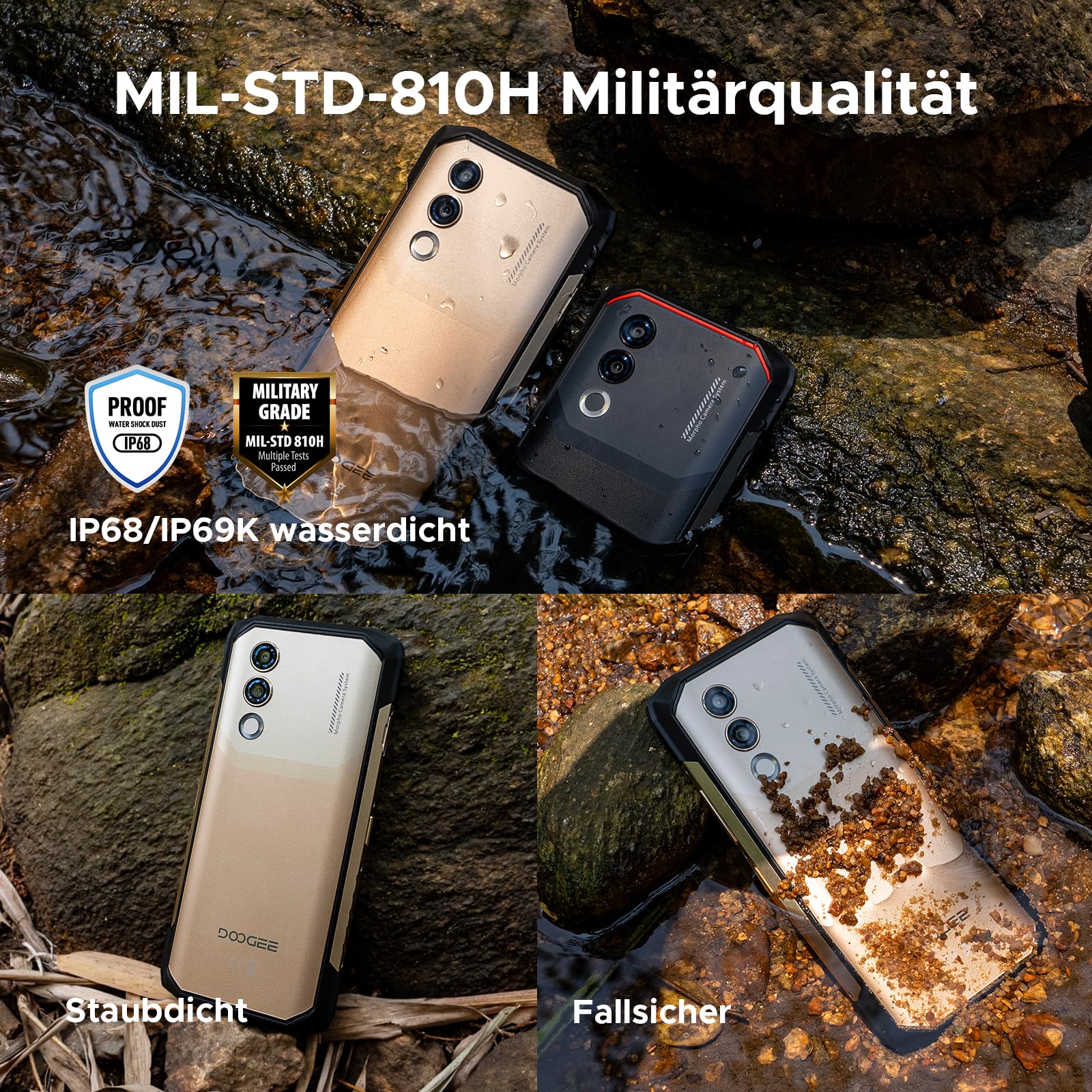 - 👍👍【IP68/IP69K & MIL-STD-810H】DOOGEE Blade 20 Turbo Outdoor Handy ohne vertrag verfügt über die Wasserdichtigkeitsklasse IP68 und die Staubschutzzertifizierung IP69K, sodass es unabhängig von Temperatur, Wasser oder Staub problemlos verwendet werden kann. Es ist MIL-STD-810H zertifiziert, was bedeutet, dass es stoß- und vibrationsfest ist und in extremen Umgebungen eingesetzt werden kann. DOOGEE Blade 20 Turbo 5G Outdoor Smartphone Android 15 ist der perfekte Begleiter für alle Ihre Abenteuer.