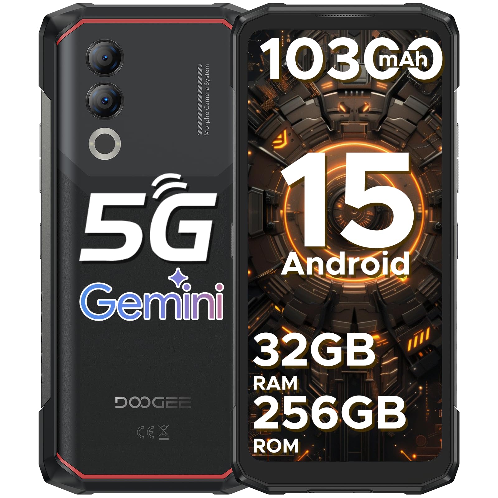 - 👑👑【5G Dimensity 7050 & Gemini AI & Android 15】DOOGEE Blade 20 Turbo Outdoor Handy ohne Vertrag ist mit dem neuesten Android 15 System ausgestattet, mit Dimensity 7050 5G mit bis zu 2,6GHz Frequenz. Der Prozessor sorgt für ein reibungsloses und nahtloses Betriebserlebnis und eine ultraschnelle Internetverbindung. DOOGEE Blade 20 Turbo Gemini Funktionen unterstützen Text-, Bild-, Audio- und Videoeingabe und -ausgabe, die hohe Qualität für mehrere Szenarien schnell zu erzeugen Informationen