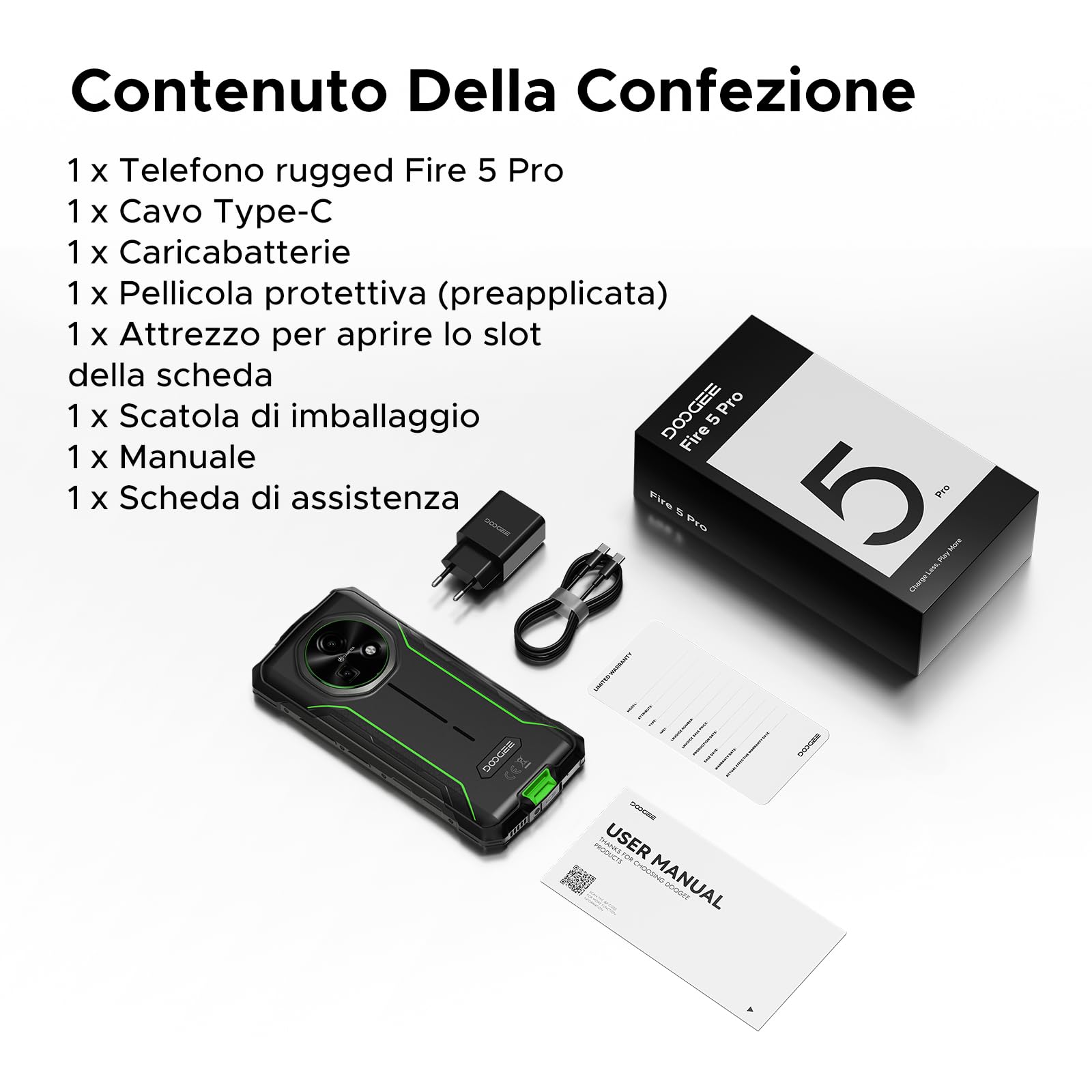- 13000 mAh Akku + 18 W Schnellladung + OTG: Das Rugged DOOGEE Fire 5 Pro Smartphone verfügt über einen leistungsstarken 13000 mAh Akku für mehr Autonomie. Die 18-W-Schnellladung lädt den Akku schnell auf, während die OTG-Funktion es dem Gerät ermöglicht, auch als tragbare Powerbank zu fungieren. Das robuste Smartphone Fire 5 Pro mit Android 15 Betriebssystem bietet zuverlässige und dauerhafte Leistung für Abenteuer, Arbeit und Alltag, auch unter den härtesten Bedingungen.