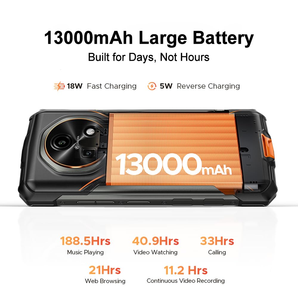 • 🔋【13000mAh Akku + 18W Schnellladung + 5W OTG Ladung】Das DOOGEE Fire 7 5G Outdoor-Smartphone verfügt über einen riesigen 13.000-mAh-Akku, der bis zu 188,5 Stunden Musikwiedergabe, 40,9 Stunden Videowiedergabe oder 33 Stunden Gesprächszeit ermöglicht. Es unterstützt OTG-Umkehrladung und kann über ein Datenkabel andere Geräte wie Smartphones, Kopfhörer oder Smartwatches aufladen. Dank der 18W-Schnellladetechnik müssen Sie sich keine Sorgen mehr über einen leeren Akku machen – egal, ob Sie spielen oder Videos streamen. Ideal für Outdoor-Einsätze und Notfälle.