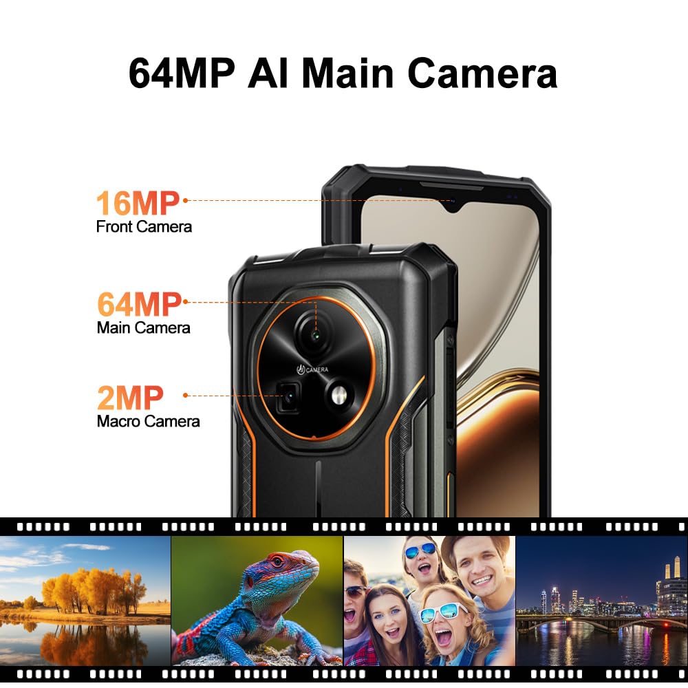 • 📷【64MP AI-Hauptkamera + 2MP-Makrokamera + 16MP-Frontkamera】Das DOOGEE Fire 7 5G Outdoor-Handy vereint hochwertige Fototechnik: Die 64MP AI-Hauptkamera mit EIS-Bildstabilisierung garantiert jederzeit gestochen scharfe Aufnahmen. Die 2MP-Makrolinse (OV02B10-Sensor, F/2.2 ±5% Blende, 73°-Bildwinkel) liefert detailstarke Nahaufnahmen. Die 16MP-Selfiekamera optimiert Selfies automatisch. Durch künstliche Intelligenz reguliert dieses robuste Handy Farben und Schärfe – so hält es jeden Moment Ihrer Abenteuer perfekt fest.