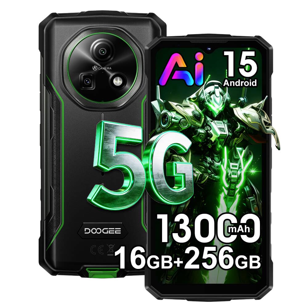 DOOGEE Fire 7 Outdoor Handy Ohne Vertrag 2026, 13000mAh 18W, 16GB+256GB/2TB 5G Outdoor Smartphone,64MP+16MP AI Kamera Baustellenhandy, Android 15, 6.6''HD+90Hz, IP68/NFC/OTG/3 Slot Grün