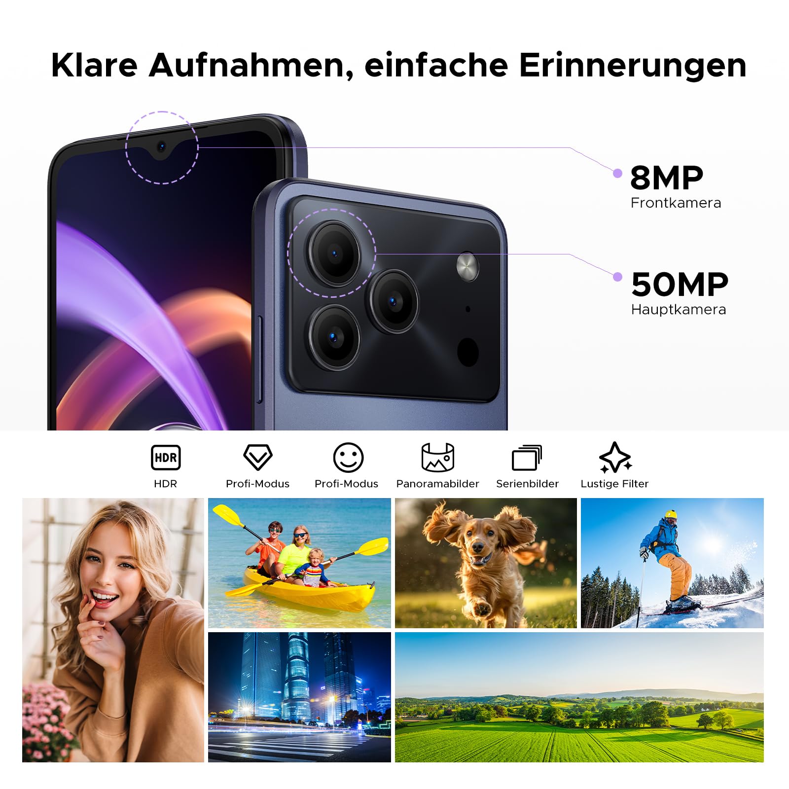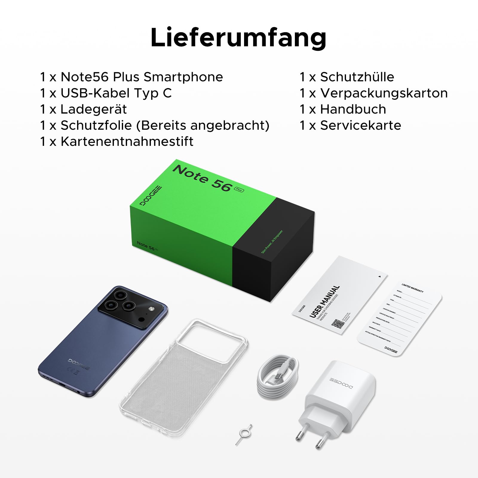 - 📷【50MP KI Kamera + 8MP Frontkamera + 4K Videoaufzeichnung】📷Das DOOGEE Note 56 Plus smartphone android 16 verfügt über eine leistungsstarke 50MP Hauptkamera, die gestochen scharfe und detailreiche Bilder aufnimmt, um wertvolle Momente mühelos festzuhalten. Dieses DOOGEE Note 56 Plus handy günstig verfügt über eine 8MP Frontkamera mit einem Beauty Modus, der Ihre Selfies mit einem stimmungsvollen und raffinierten Finish aufwertet. Mit 4K Videoaufzeichnung, Nachtmodus und PDAF ist es das ideale Smartphones für mobile Fotografen.