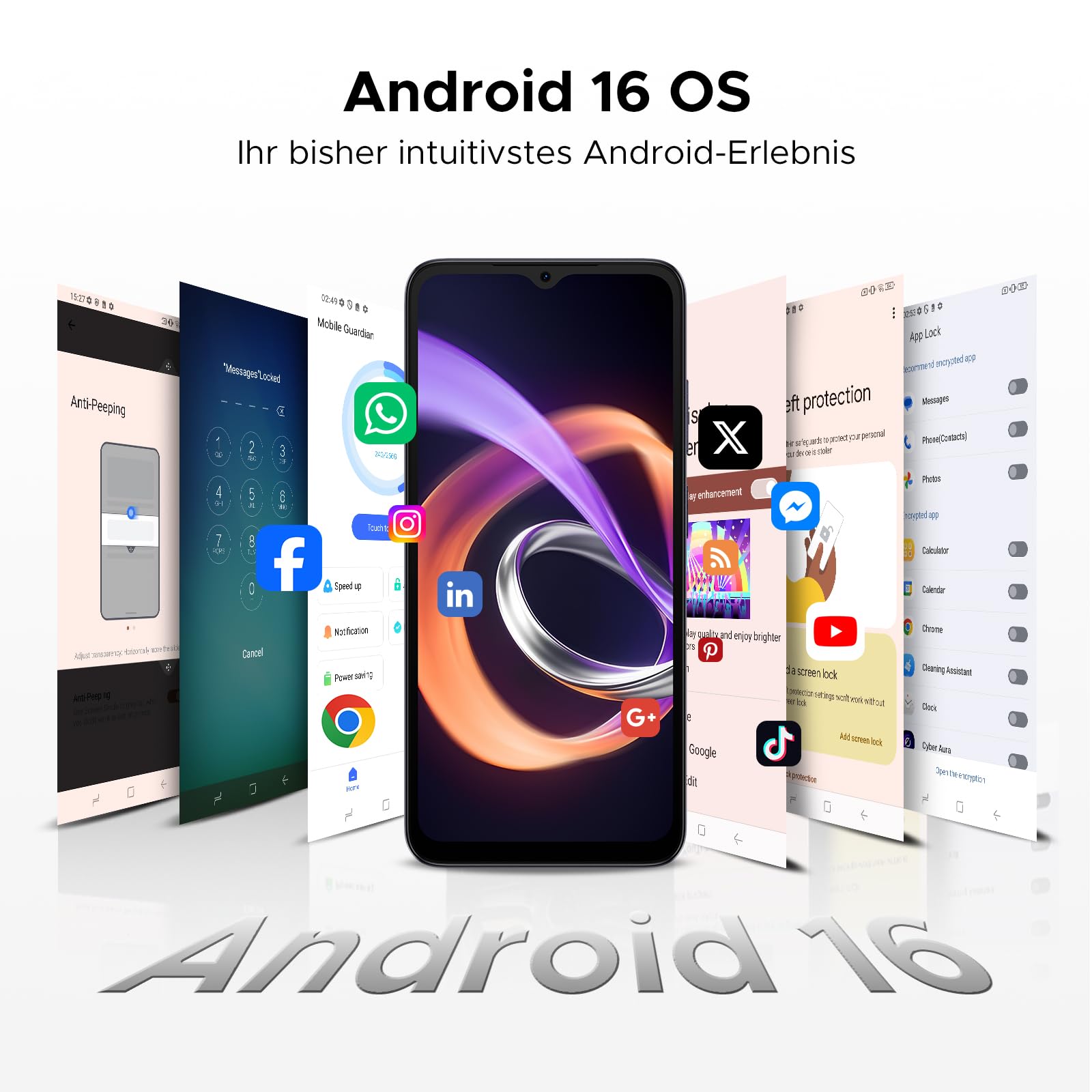 - 👑【Neueste Android 16 + Gemimi AI + Octa-Core Prozessor】👑Das DOOGEE Note 56 Plus Smartphone verfügt über das neueste Android 16 OS und bietet umfassende Verbesserungen in Bezug auf Sicherheit, Datenschutz und Leistung. Seine Gemini AI Funktionalität unterstützt die Eingabe und Ausgabe von Text, Bildern, Audio und Video und ermöglicht so die schnelle Erstellung von Inhalten in verschiedenen Szenarien. Das DOOGEE Note 56 Plus phone wird von einem Unisoc T7225 Octa-Core-Prozessor angetrieben, der ein nahtloses Betriebserlebnis und eine reibungslose Anwendungsleistung gewährleistet.