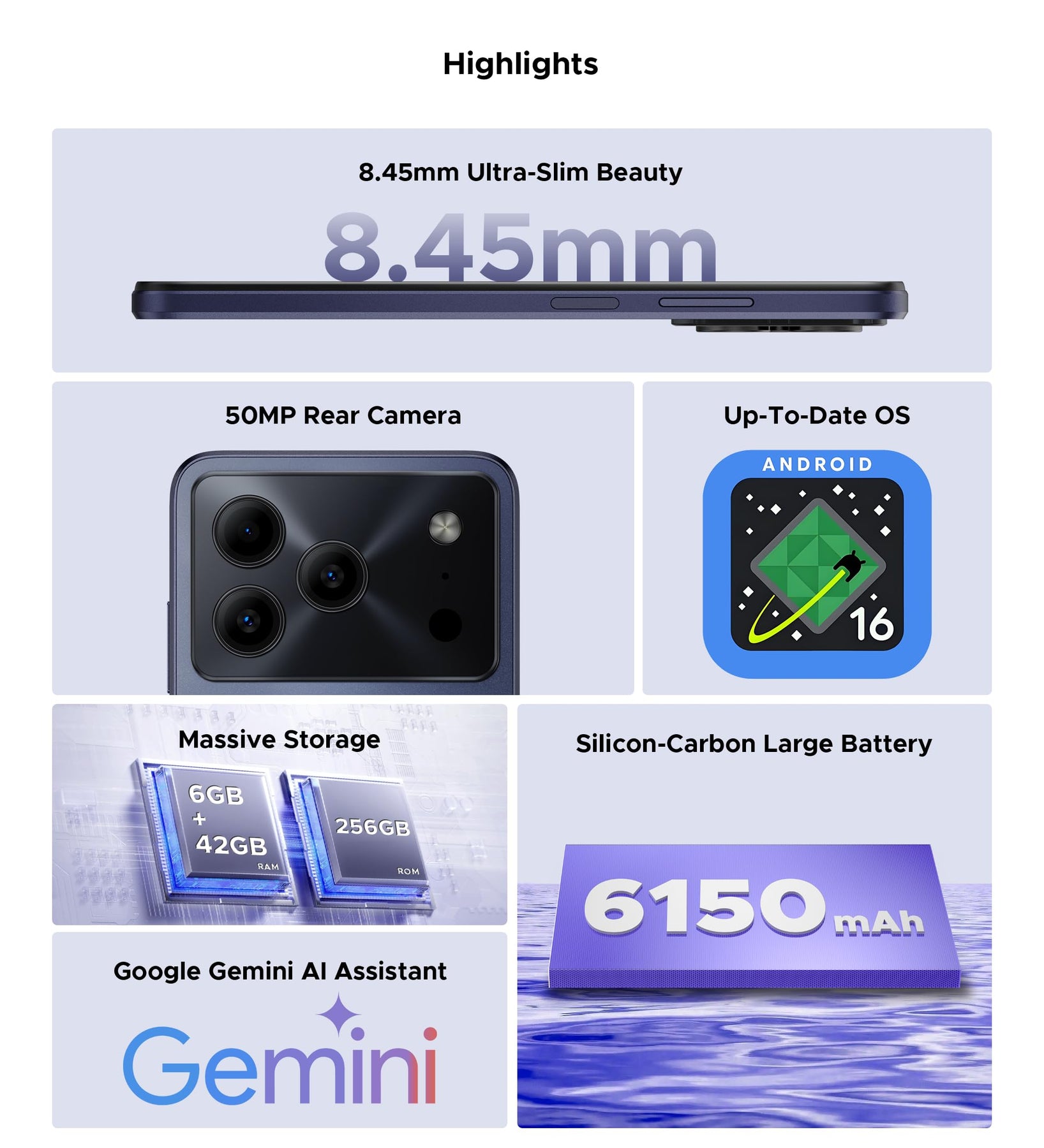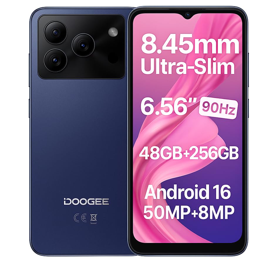 - ★ Schlankes 8,45-mm-Design | 6150mAh Langzeit-Akku: Trotz seines schlanken 8,45-mm-Designs und geringen Gewichts von nur 195 g ist das DOOGEE Note 56 PLUS mit einem leistungsstarken 6150 mAh Akku ausgestattet – für ultralange Nutzung: bis zu 20 Stunden Video, 37 Stunden Telefonie oder 161 Stunden Musikwiedergabe. Dank Android-16-Optimierung bleibst du den ganzen Tag über energiegeladen. GPS, Glonass, Galileo und Beidou sorgen für präzise Navigation – überall, wo dich das Leben hinführt.