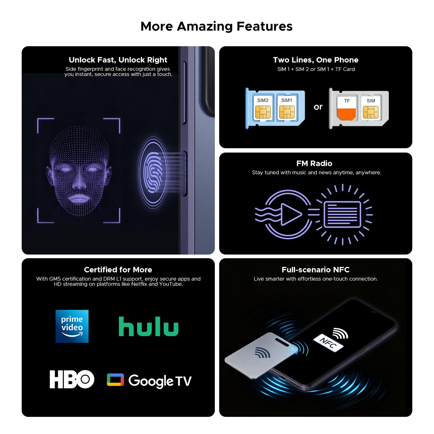 - ★ Android 16+Gemini AI+NFC | Intelligenteres, kreativeres Erlebnis: Mit Android 16 bietet das DOOGEE Note 56 PLUS Smartphone ein schnelleres, sichereres und KI-optimiertes Nutzungserlebnis. Gemini AI hilft dir, Emojis, Memes und mehr direkt auf deinem Smartphone zu erstellen, zu bearbeiten und zu teilen. NFC mit Google Pay ermöglicht mühelose kontaktlose Zahlungen. Genieße reibungslosen Betrieb, verbesserte Privatsphäre und gesteigerte Produktivität – dein smarter, kreativer Alltagsassistent.