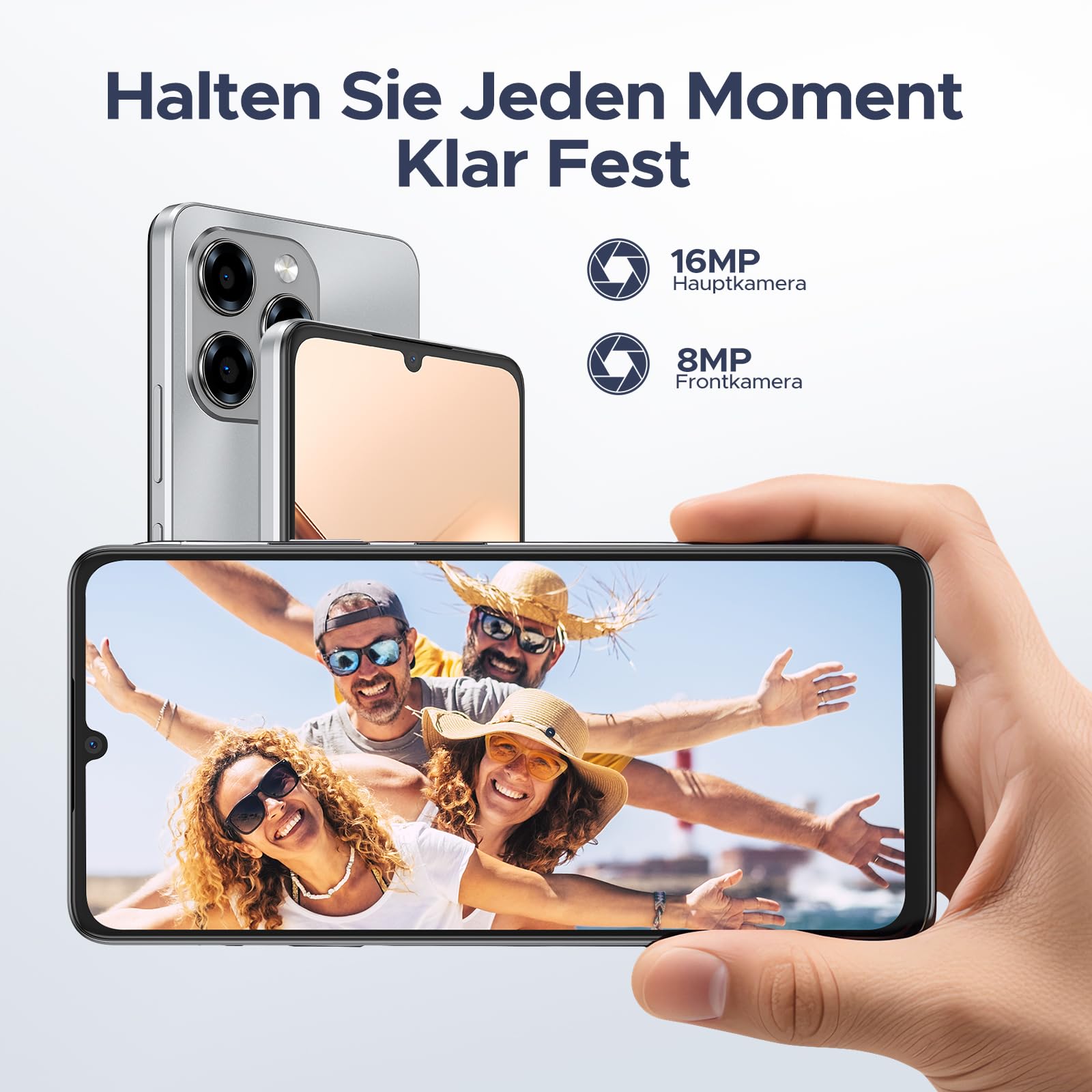 【16 MP AI Hauptkamera und mehrere Fotomodi】Das DOOGEE Note 58 Smartphone verfügt über eine 16 MP AI Hauptkamera und eine 8MP Frontkamera und bietet verschiedene Aufnahmemodi wie HDR, Nachtmodus, Zeitraffer, Porträtmodus, Panoramamodus und Pro-Modus, sodass Sie Ihrer Kreativität bei allen Lichtverhältnissen freien Lauf lassen können. Beauty-Modus, Filter, Lächel-Timer und Sprachkommentare verbessern Ihre Aufnahmen, während die 1080p-Videoaufnahme für scharfe und klare Videos sorgt.