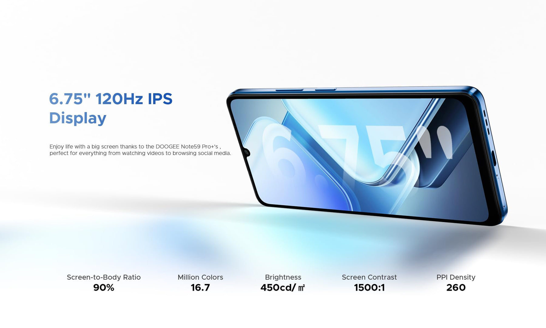 - ★ Waterdrop-Display, Stilvolles Design – Robust im Inneren, Stark im Äußeren: Das Doogee Note59 Pro+ überzeugt mit einem schlanken, eleganten Design bei nur 8,6 mm Gehäusedicke. Es liegt angenehm in der Hand und ist komfortabel in der Nutzung. Die verstärkte Gehäusestruktur erhöht die Haltbarkeit deutlich und schützt besser vor Stürzen und Abnutzung. (6,75" IPS-Display mit 120Hz Bildwiederholrate)