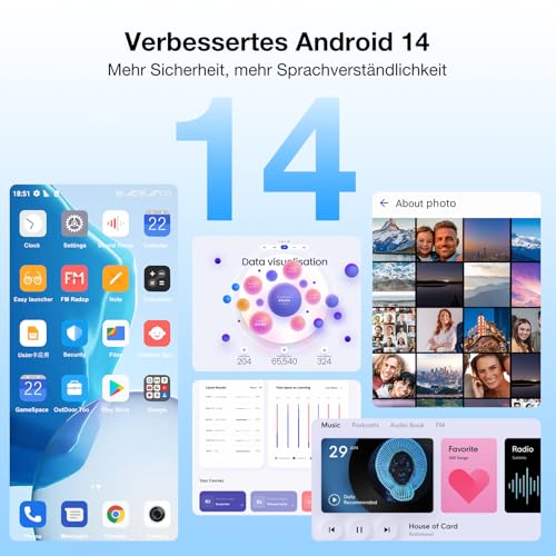 - 2024 Neueste Android 14 Smartphone, Octa-Core: Das vertragsfreie DOOGEE N55 Plus smartphone ohne vertrag ist mit einem Octa-Core-Prozessor ausgestattet und läuft auf Android 14 für schnelle Leistung und optimiertes Software-Erlebnis, wodurch Leistung und Stromverbrauch des android handy ausgeglichener werden und Ihr Erlebnis bei allen Gaming- und Multimedia-Nutzungen verbessert wird. Genießen Sie ein effizientes und komfortables Benutzererlebnis mit diesem leistungsstarken gaming smartphone.