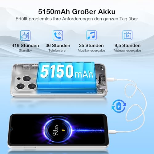 - 2024 Neueste Android 14 Smartphone, Octa-Core: Das vertragsfreie DOOGEE N55 Plus smartphone ohne vertrag ist mit einem Octa-Core-Prozessor ausgestattet und läuft auf Android 14 für schnelle Leistung und optimiertes Software-Erlebnis, wodurch Leistung und Stromverbrauch des android handy ausgeglichener werden und Ihr Erlebnis bei allen Gaming- und Multimedia-Nutzungen verbessert wird. Genießen Sie ein effizientes und komfortables Benutzererlebnis mit diesem leistungsstarken gaming smartphone.