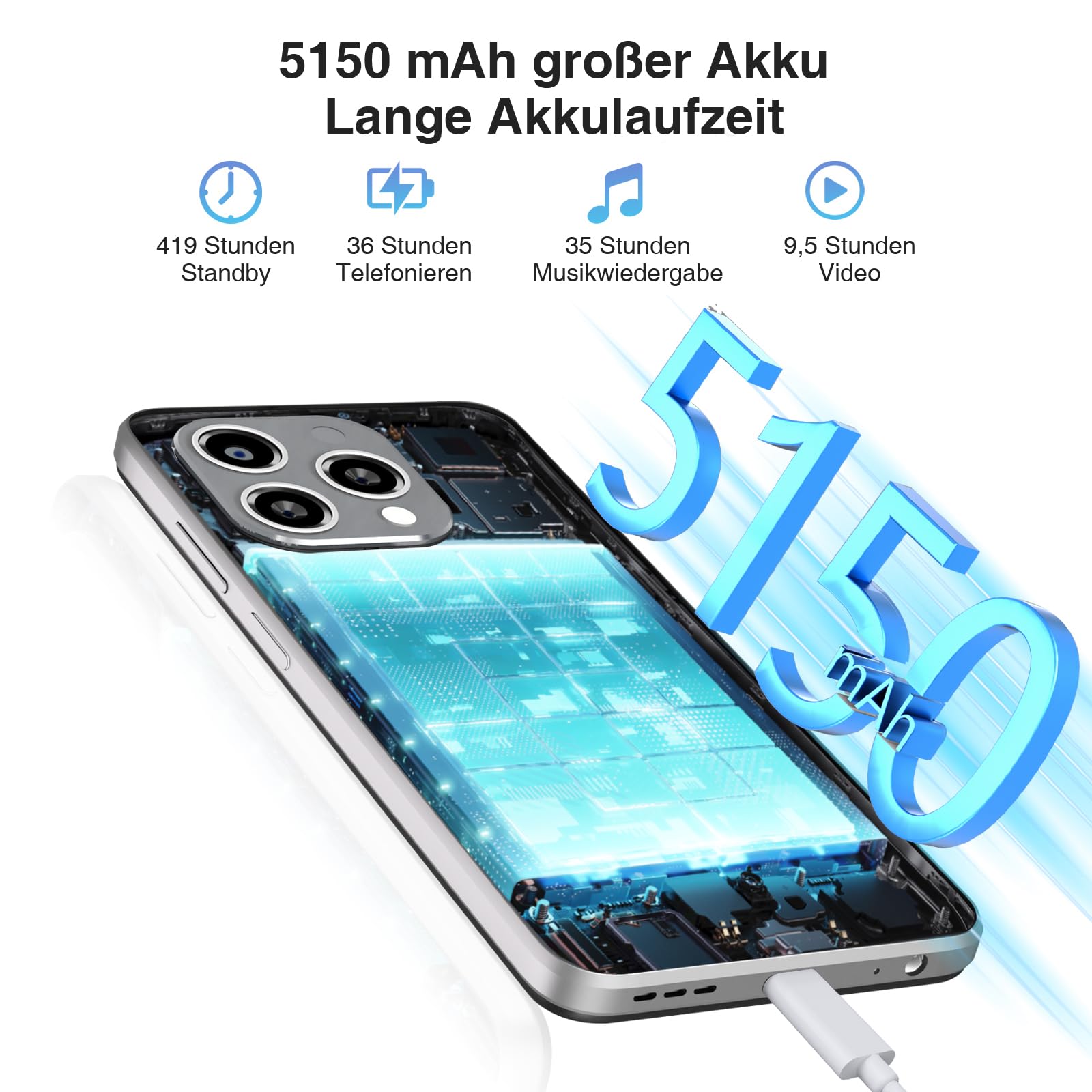 - 【5150 mAh Akku + Widevine L1】Das DOOGEE N55 Plus Smartphone ohne Vertrag Angebot verfügt über einen 5150 mAh Akku, der den Nutzern großartige Funktionen bietet und eine unvergleichliche Akkulaufzeit für einen reibungslosen Tag gewährleistet. Die angebotenen Mobiltelefone DOOGEE N55 Plus werden von Widevine L1 unterstützt, das Videoinhalte von hoher Sicherheit und Qualität bietet.