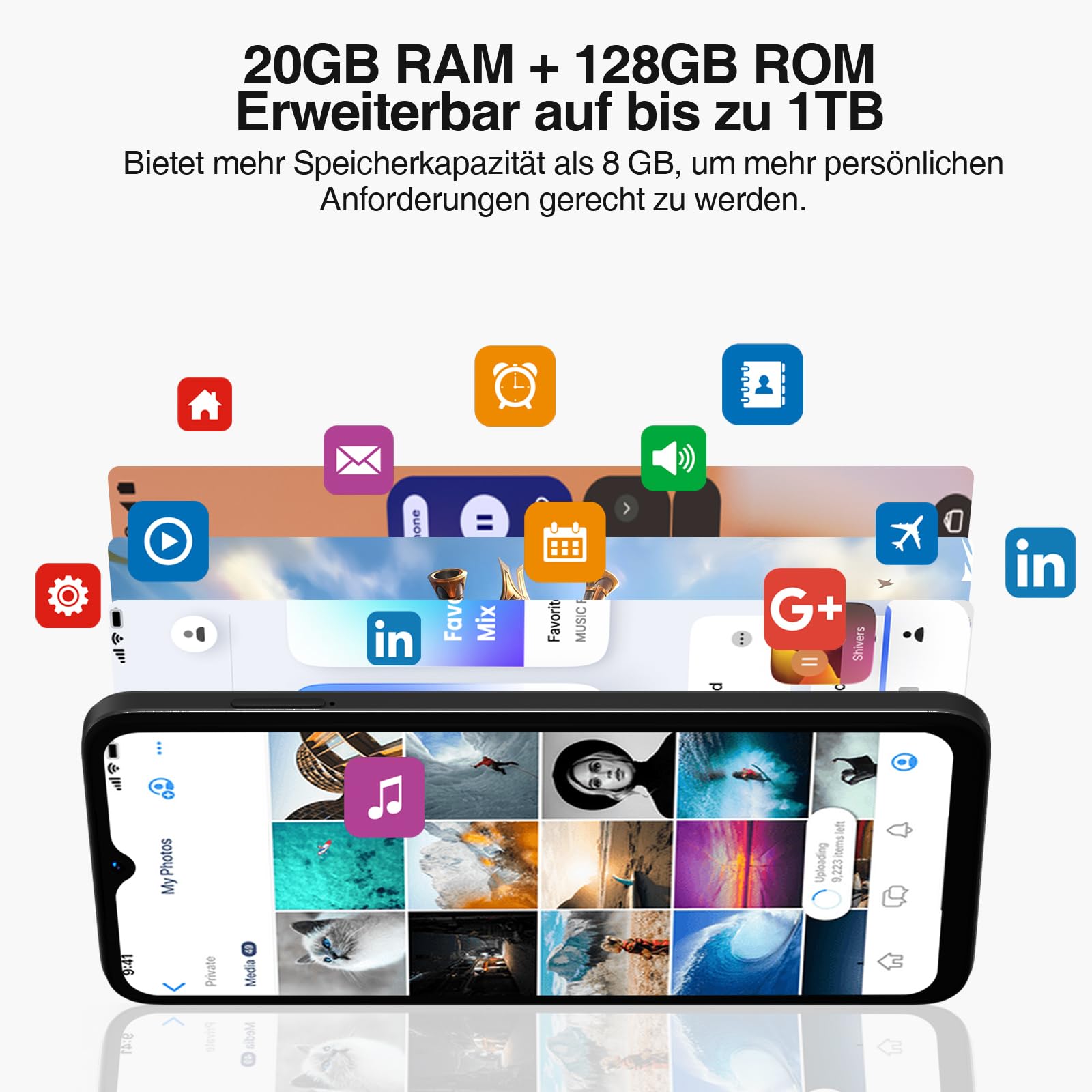 - 【20GB RAM+128GB ROM /1TB + Octa Core】Das DOOGEE N55 Plus handy ohne vertrag verwendet einen Octa-Core-Prozessor, um eine hervorragende Leistung, schnellere Reaktionszeiten und einen geringeren Energieverbrauch zu gewährleisten und das beste Spielerlebnis und die beste Bildverarbeitung zu genießen. Das Smartphone ohne Vertrag Angebot verfügt über 20 GB RAM und 128 GB Speicher (erweiterbar auf bis zu 1 TB). Dies bietet ausreichend Speicherplatz für Ihr Handy, um mehr Fotos, Videos und Apps zu speichern.