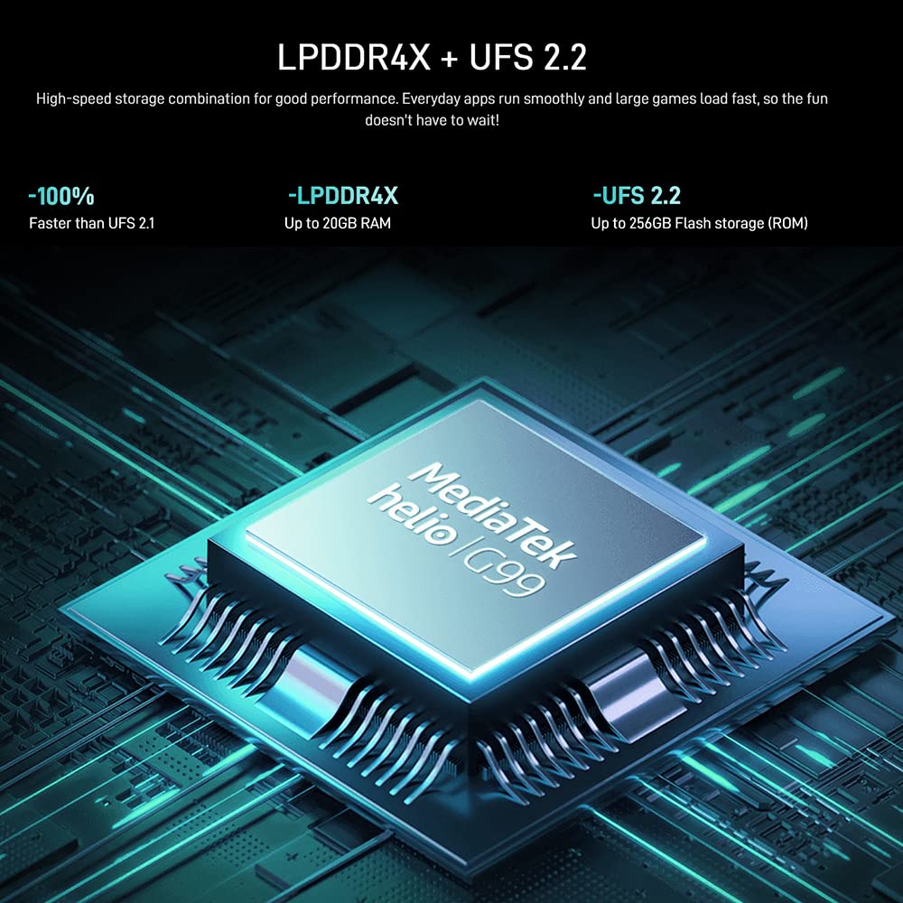- 🚀 【MTK Helio G99 Octa Core, 12GB RAM und 8 Virtual RAM mit 256GB ROM, Android 12】 Transformieren Sie Ihr Erlebnis von Geschwindigkeit und Leistung mit dem hochmodernen MediaTek Helio G99 Chipsatz. Mit 12 GB RAM und 8 Virtual RAM und 256 GB ROM Speicher zeichnet sich das Android S99 Telefon durch Multitasking aus. 1TB interner Speicher und maximaler erweiterbarer Speicher können bis zu 1T Speicher erreichen, vom Ausführen von Spielen und Apps bis hin zum Halten von Fotos zur Hand,