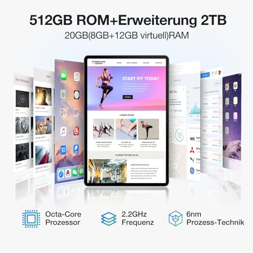 【G99 & 20(8+12)GB RAM & 512GB ROM】 DOOGEE T30 MAX Tablet ist mit 512GB ROM-Speicher ausgestattet und unterstützt bis zu 2TB erweiterbare Speicherkapazität, sodass Sie problemlos speichern können. Verwendung eines G99-8-Kern-Prozessors, 6-nm-Prozess, Hauptfrequenz 2,2 GHz, wodurch der Stromverbrauch reduziert wird. Ausgestattet mit 8 GB Basis-RAM werden bei voller Auslastung 12 GB virtueller RAM für einen schnelleren Wechsel zwischen mehreren Anwendungen aktiviert.