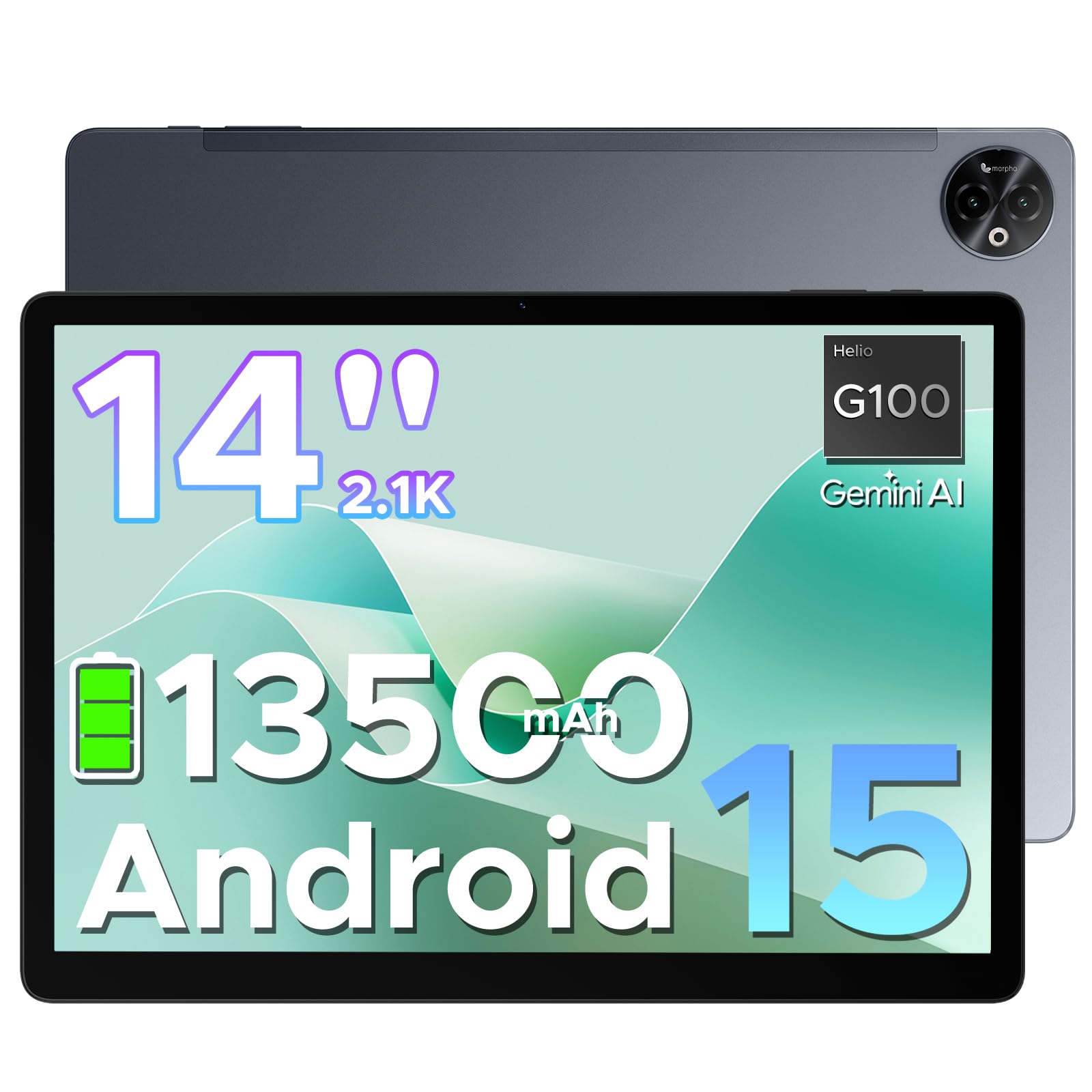 - 【13500mAh Akku + High quality quad speakers】Das Tablet 14 zoll Mit einem 13500mAh große Akku bietet das Tablet. So können Sie rund um die Uhr Musik oder ein paar Filme genießen, ohne sich Gedanken über das Aufladen machen zu müssen. Vier Stereolautsprecher liefern einen klareren und lauteren Klang, der Ihr Unterhaltungserlebnis auf ein neues Niveau hebt. und ist mit dem MediaTek Helio G100 Chip ausgestattet, der die Wärmeentwicklung reduziert und gleichzeitig eine hervorragende Leistung beibehält. und hervorragende Klangqualität