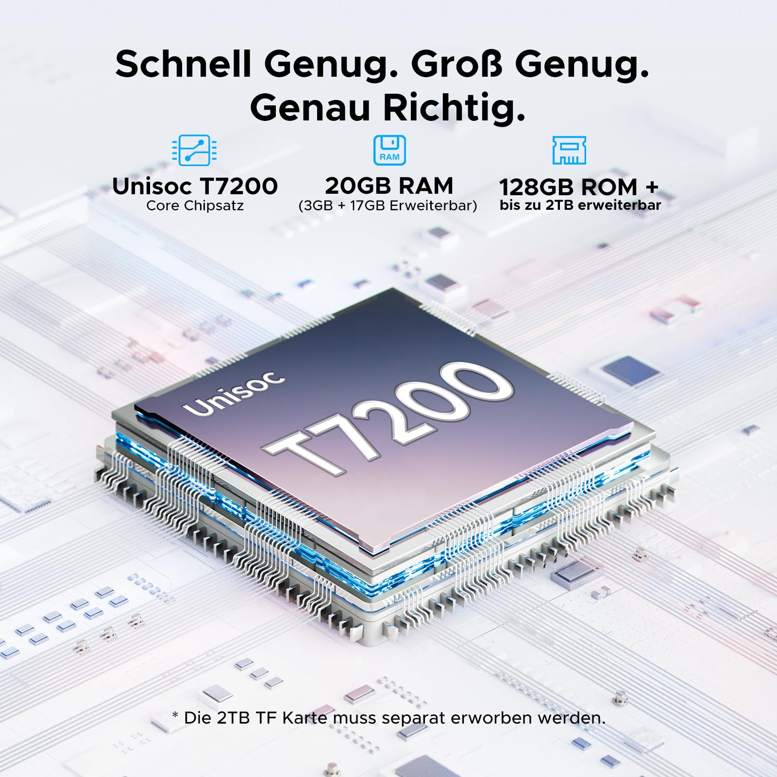 • 💾【Leistungsstark & Großzügiger Speicher: T7200 Octa Core Prozessor & 20GB + 128GB/2TB】 DOOGEE Tab G5 Tablet 10 Zoll ist mit einem Unisoc T7200 Octa Core Prozessor mit LPDDR4X Technologie ausgestattet, der für flüssiges Arbeiten und geringen Stromverbrauch sorgt. Das Tablet mit Stift verfügt über 20GB RAM (3GB + 17GB) und 128GB eMMC Speicher (TF 2TB). Ob Multitasking, Gaming oder die Wiedergabe von HD Videos – es läuft stabil und effizient und bietet eine schnelle und flüssige Performance