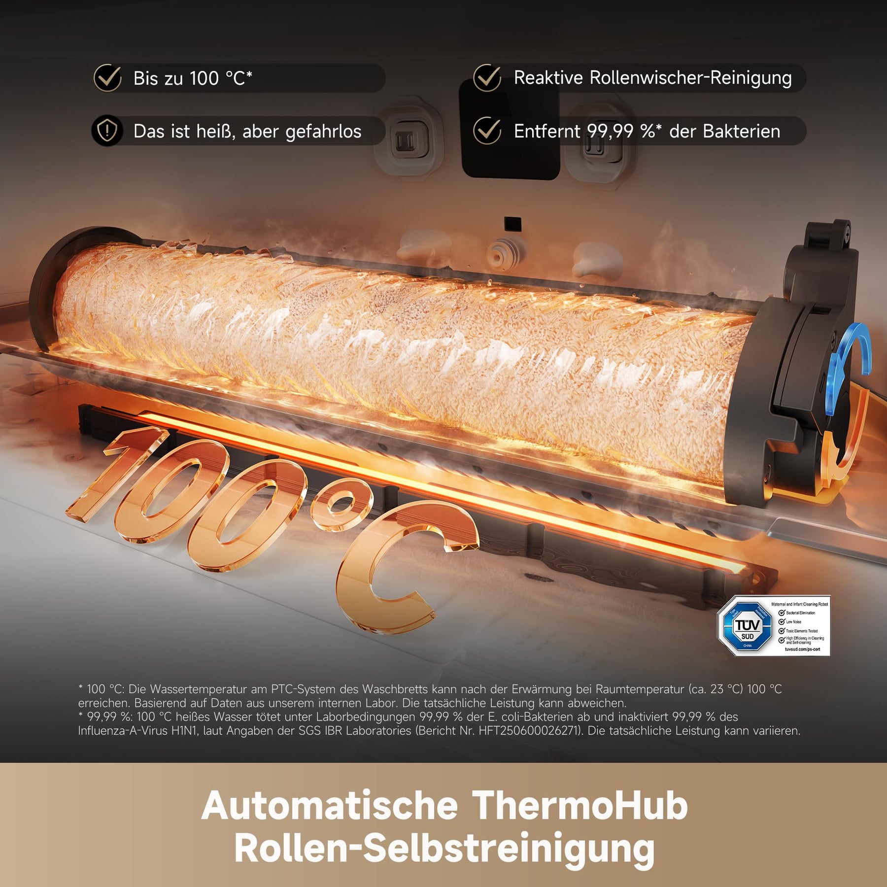 - Überlassen Sie die unangenehmen Aufgaben dem Dock: Das Allzweck-PowerDock übernimmt die vollständige Wartung des Geräts, sodass Sie sich nicht die Hände schmutzig machen müssen; Es entleert den Staubbehälter bis zu 100 Tage lang automatisch, wäscht die Rollenwischer mit bis zu 100 °C heißem Wasser und trocknet sie mit Warmluft; Außerdem füllt es die Wasserbehälter und den Behälter für zwei Reinigungslösungen nach