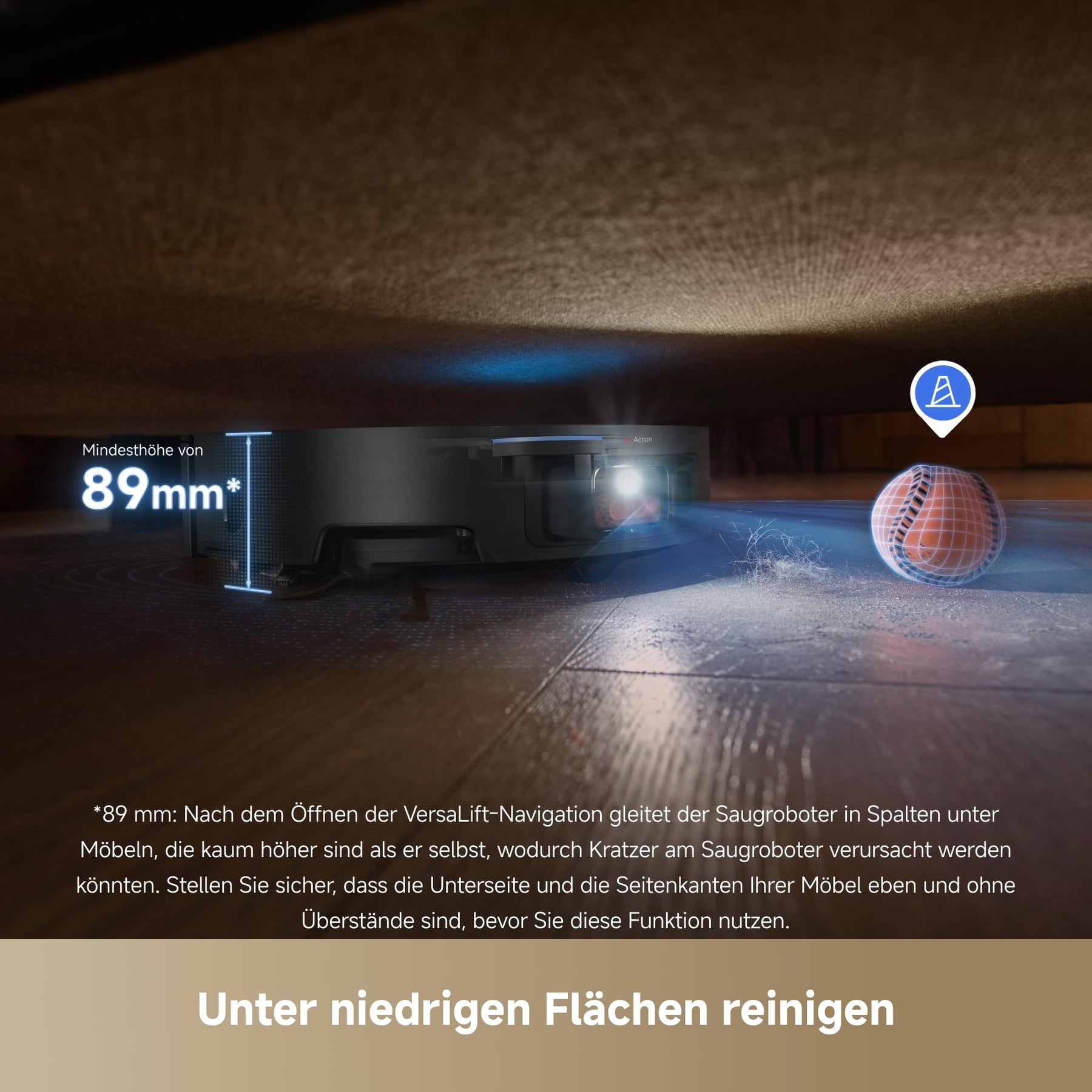 - 【Hindernisse haben keine Chance】Das eingebaute ProLeap-System ermöglicht es dem Saugroboter, ohne Probleme mit Hindernissen wie Türschienen, Schwellen oder tückischen Möbelstücken klarzukommen. Der Roboter kann Hindernisse bis zu einer Höhe von 6 cm überwinden, während seine stoßdämpfenden Beine Böden und Möbel schonen