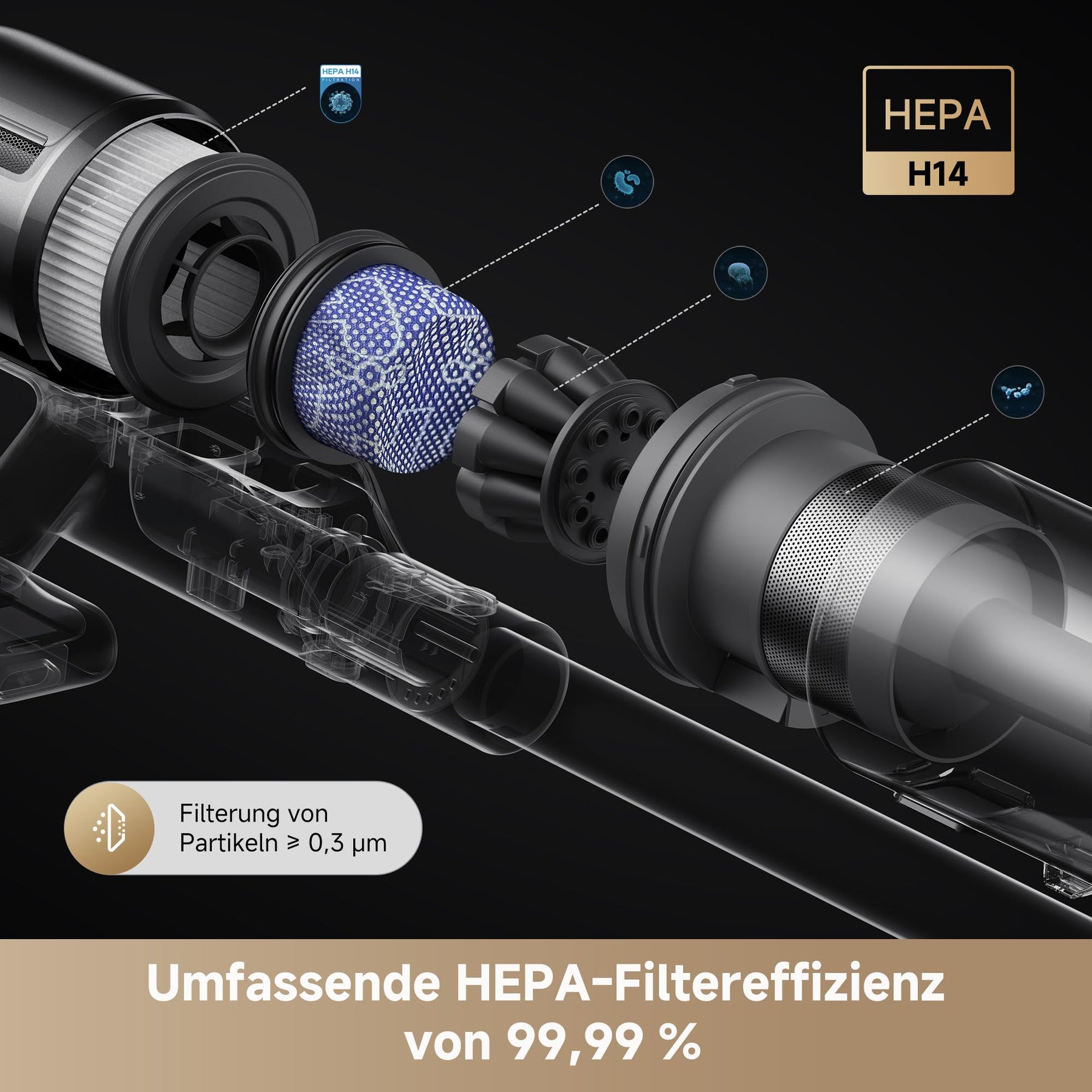 - Hohe Filterleistung für null Staub: Verabschieden Sie sich von lästigem Staub mit einer Filterung von 99,99 %. Das umfassende H14*-HEPA-Filtersystem des Z10 fängt Staub und Partikel bis zu einer Größe von 0,3 Mikrometern auf, stoppt damit Allergene und verhindert ihre erneute Freisetzung