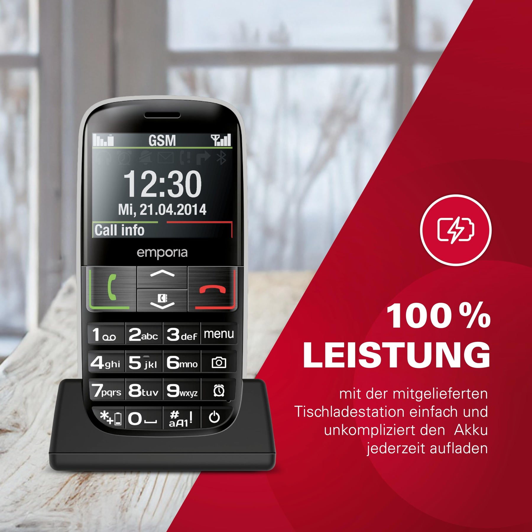 Emporia V50 Großtastenhandy (Notruf-Funktion, Bluetooth 3.0, HFP, HSP, PBAP, OPP) schwarz. Telefonbucheinträge: 300