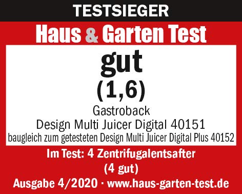 Einzelheiten: Gastroback Entsafter 40151 Design Multi Juicer Digital, 1300 Watt Profi-Motor, XXL - Einfüllschacht (Ø 84 mm), 5 Geschwindigkeitsstufen