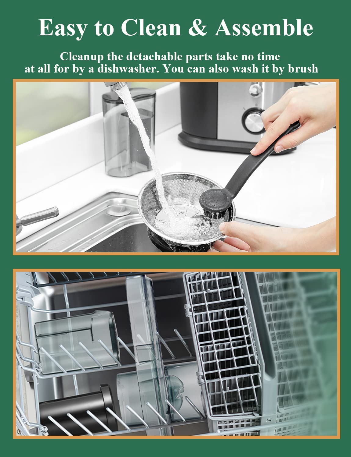- 【FREIES REZEPT ENTHALTEN & LEICHT ZU REINIGEN】Jedes Juilist 336 Entsafter-Set enthält ein kostenloses Rezept und Sie können jeden Tag in der Woche verschiedene Getränke mit hohem Nährwert entsaften. Wenn Sie derjenige sind, der sehr auf die Gesundheit achtet und versucht, Fett zu verbrennen, sollten Sie sich diesen Entsafter nicht entgehen lassen! Darüber hinaus kann der Juilist zentrifugal entsafter leicht zerlegt werden und ist spülmaschinenfest.