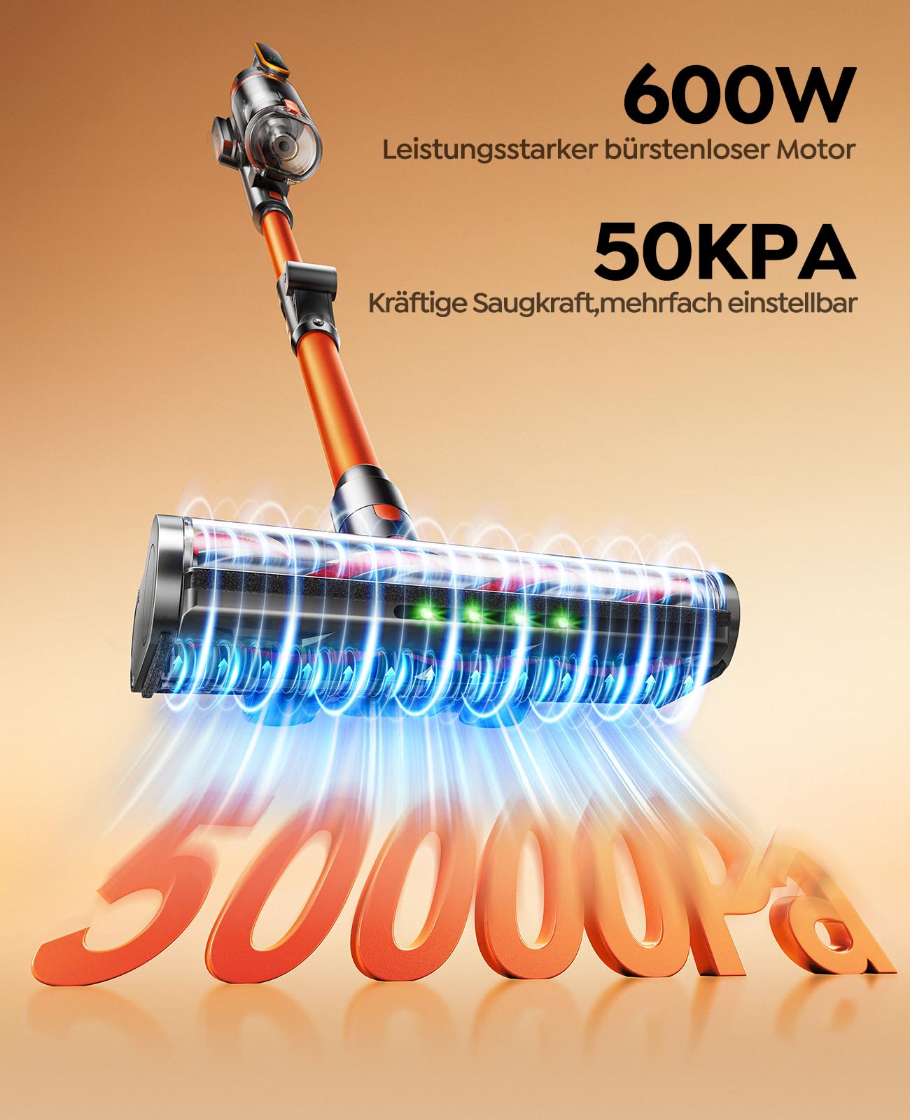 • 🌀【50000 Pa & 600W Supersaugkraft 】Dank des leistungsstarken bürstenlosen 600W-Motors erreicht dieser Akku Staubsauger eine beeindruckende Saugleistung von bis zu 50 KPa. Er entfernt mühelos groben Schmutz, hartnäckige Flecken, Tierhaare, Teppichflusen sowie Staub in Ecken und schwer erreichbaren Bereichen. Mit nur <62 dB bleibt er leise und schont Ihre Familie und Haustiere