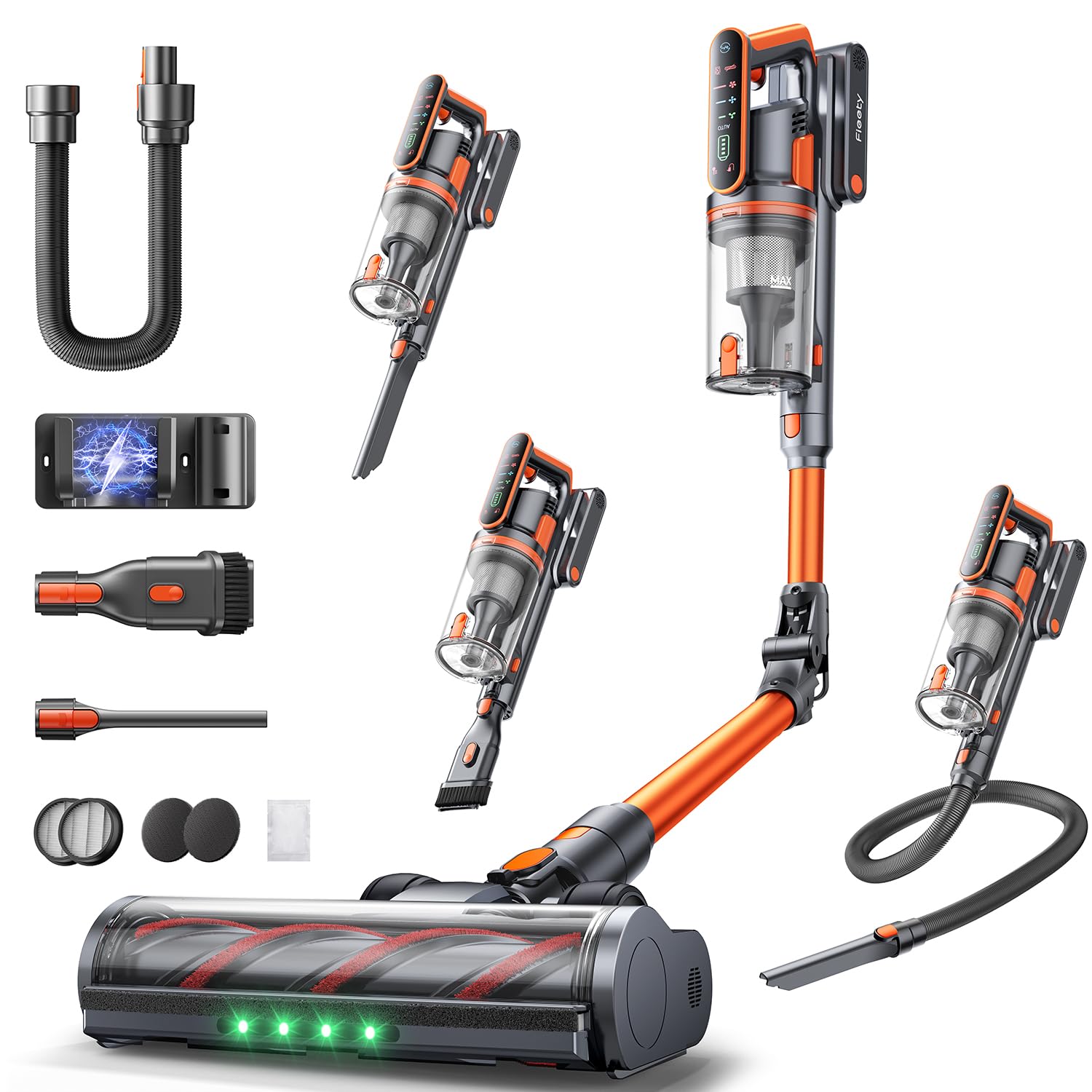 Fieety Akku Staubsauger,600W/50kPa/65Min Staubsauger Kabellos mit Wandmontierte Ladestation, Aromatherapie, Automatikmodus, Flexibles Biegegelenk, 1M Schlauch für Hartböden Teppiche Tierhaare Auto