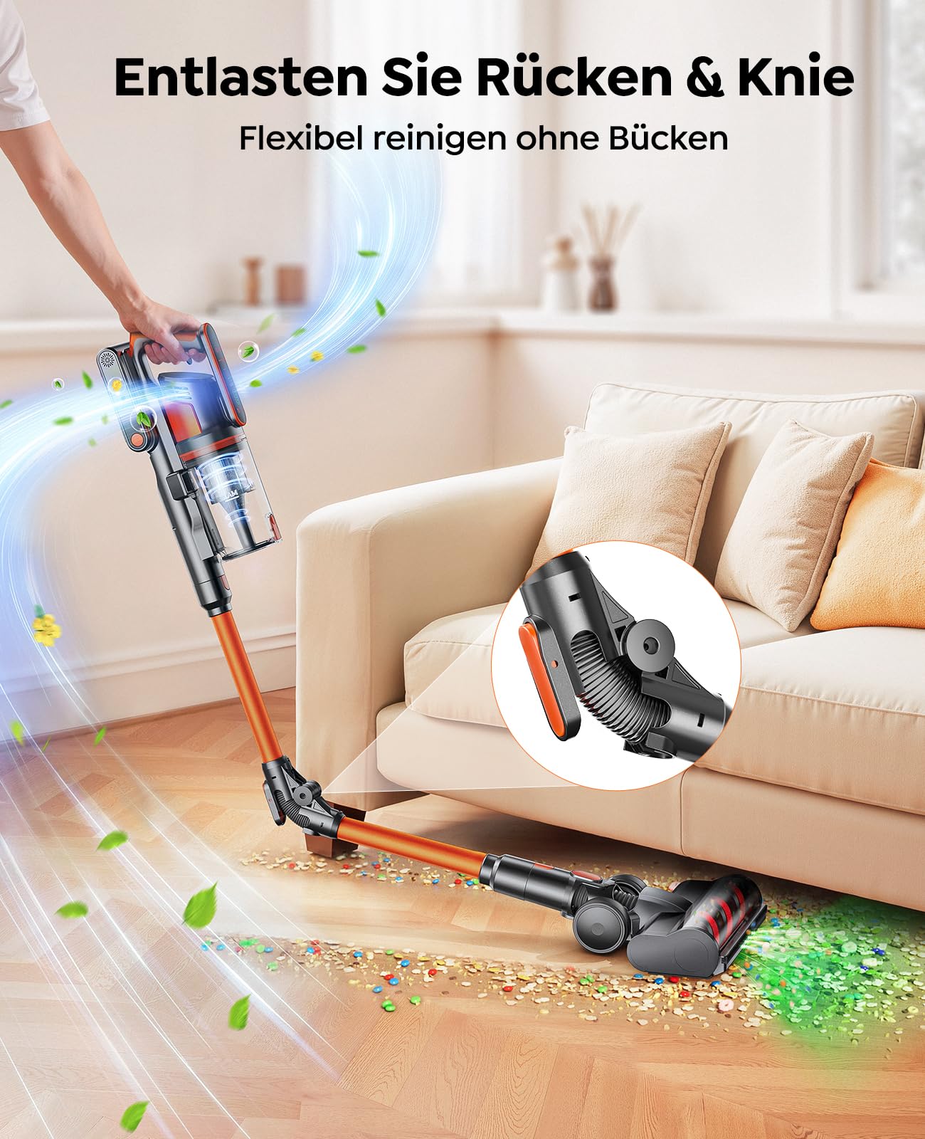 • ✅ 【ENDLICH OHNE BÜCKEN: Ein-Knopf-Biegemechanismus für schonende Reinigung unter Möbeln】 Unser innovativer Staubsauger mit einzigartigem Ein-Knopf-Biegemechanismus beendet das anstrengende Bücken und mühsame Möbelrücken für immer! Einfach den Knopf drücken – das Teleskoprohr biegt sich automatisch und gleitet mühelos unter Sofas, Betten und Schränke. Diese besonders rücken- und gelenkschonende Funktion ist ideal für Senioren und alle, die ihre Haushaltsroutine erleichtern möchten. Genießen Sie eine gründliche Reinigung selbst in den verstecktesten Ecken, ohne sich bücken oder knien zu müssen. Deutsche Ingenieurskunst schenkt Ihnen damit mehr Komfort und Unabhängigkeit im Alltag.