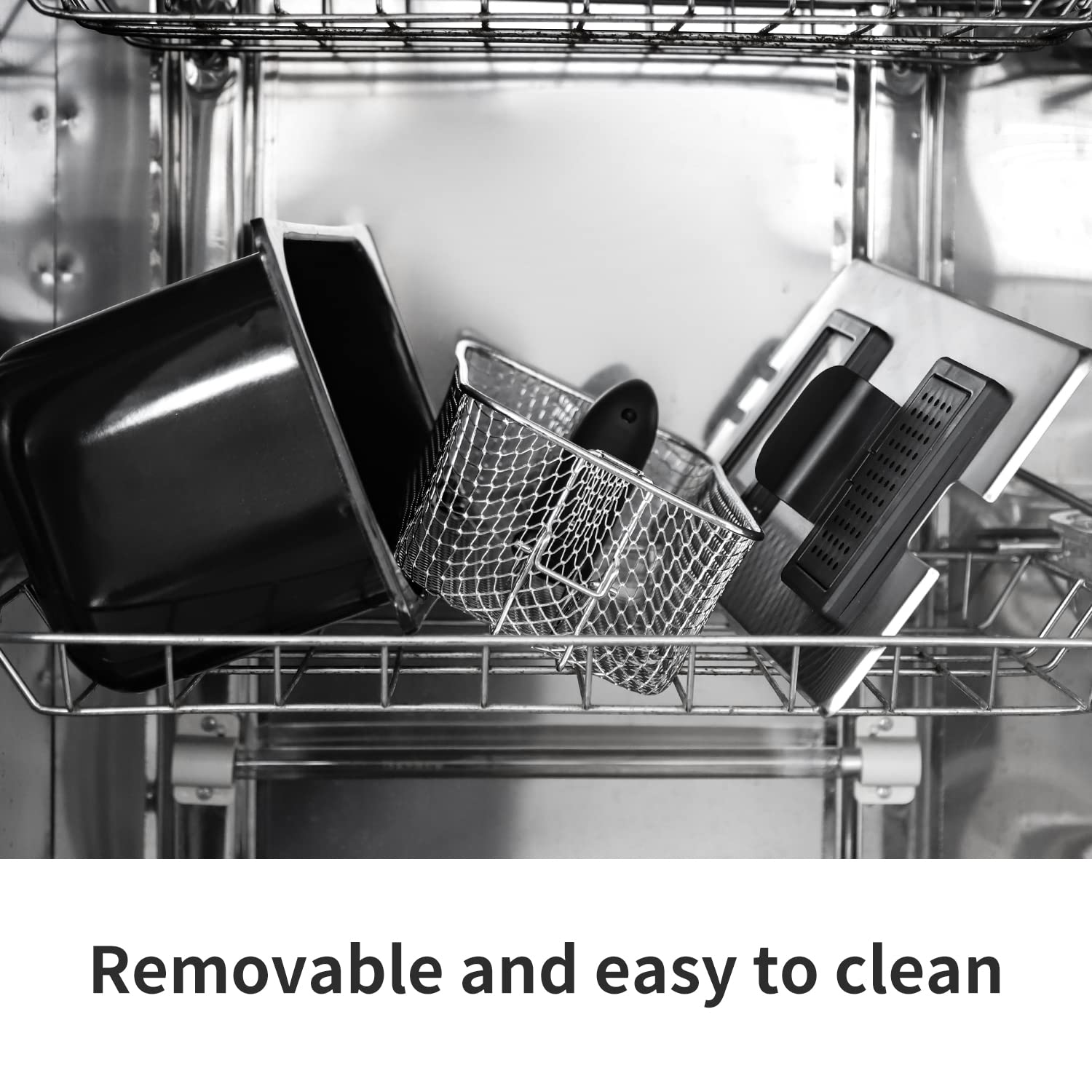 - 【Sicheres Kochen】 Hochwertiges Edelstahlgehäuse mit Sichtfenster im Deckel, das beim Kochen das Spritzen von Fett oder Öl verhindert. Abnehmbare Antihaft-Emaille Ölschale für einfache Reinigung. Edelstahl-Frittierkorb mit abnehmbarem, kühlen Touch-Griff für einfaches Halten.