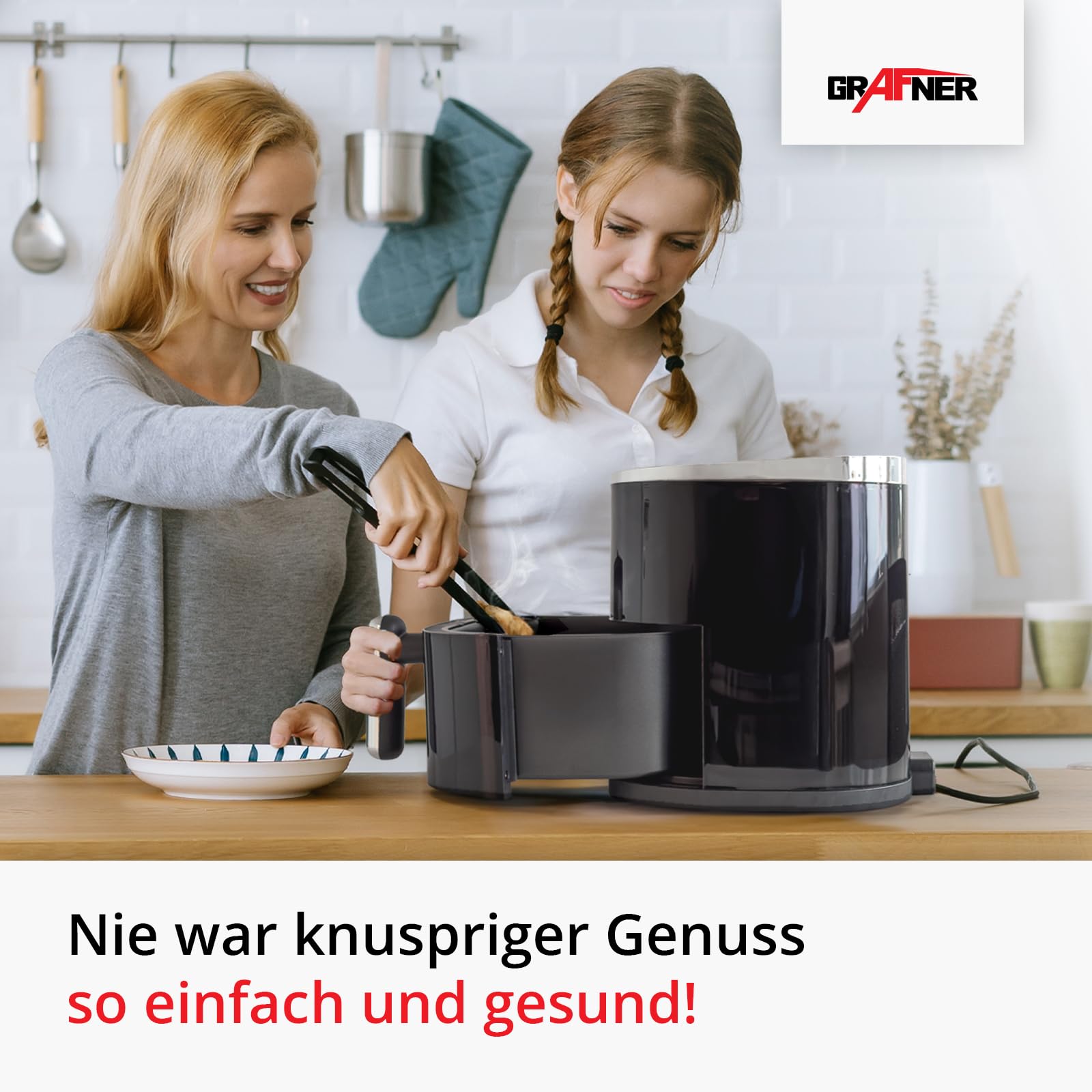 VIELSEITIG: Unsere Heißluftfritteuse eignet sich nicht nur für die Zubereitung von Pommes Frittes– auch Kartoffelspalten, Rösti oder Fleischgerichte wie z.B. Chicken-Nuggets oder Chicken-Wings gelingen Ihnen besser als je zuvor! Zudem kann unsere Heißluftfritteuse auch zum Backen und zum Dörren von Obst oder Gemüse genutzt werden.