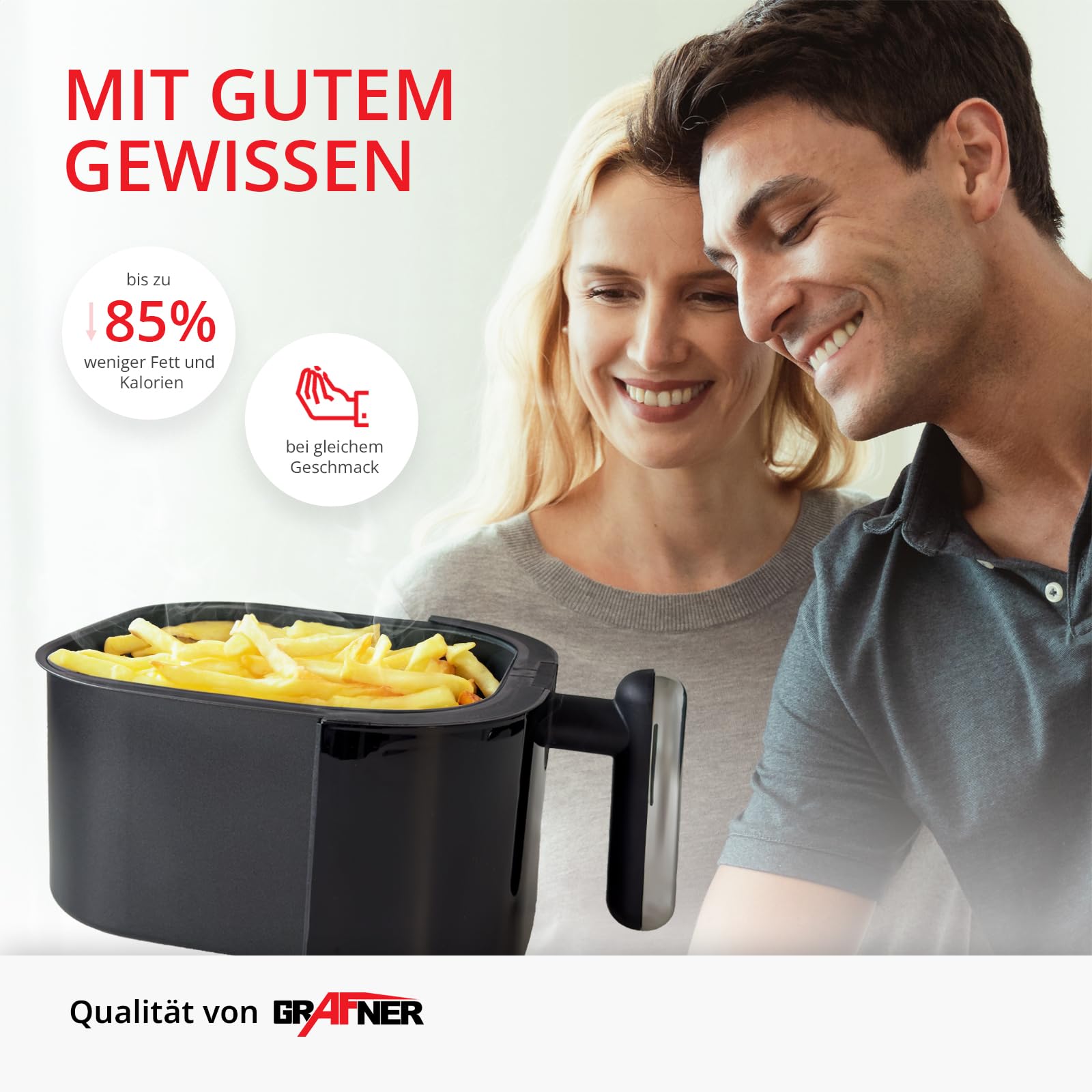 MIT GUTEM GEWISSEN: Da für die Zubereitung kein Öl oder Fett benötigt wird, reduziert sich die Aufnahme von Fett und Kalorien um bis zu 85% - bei gleichem Geschmack und Aroma. Das 360° Gar-System garantiert eine knusprige Außenseite und ein zartes Inneres, so wie Sie es von Ihrer bisherigen Fritteuse gewöhnt sind.