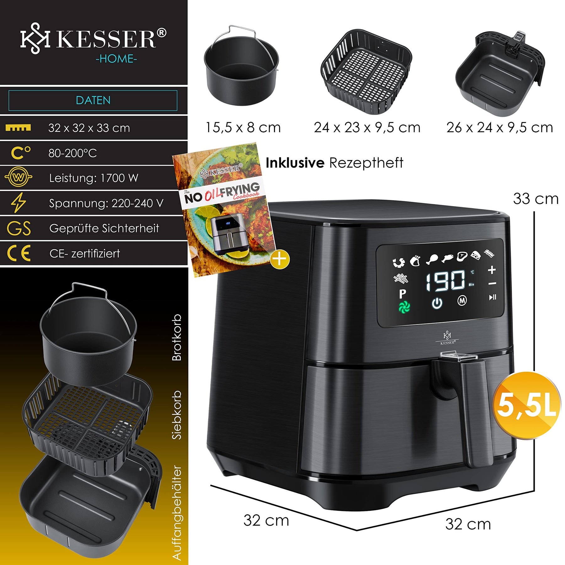 Mit der Kesser® Fritteuse entscheiden Sie sich für ein echtes Multitalent in Ihrer Küche. Mit diesem Gerät vereinen Sie gleich mehrere Funktionen :Mit der Fritteuse gelingen Ihnen nicht nur knusprige Pommes sondern Sie können damit auch noch Ihre Speisen Garen, Schmoren, Grillen oder Braten.