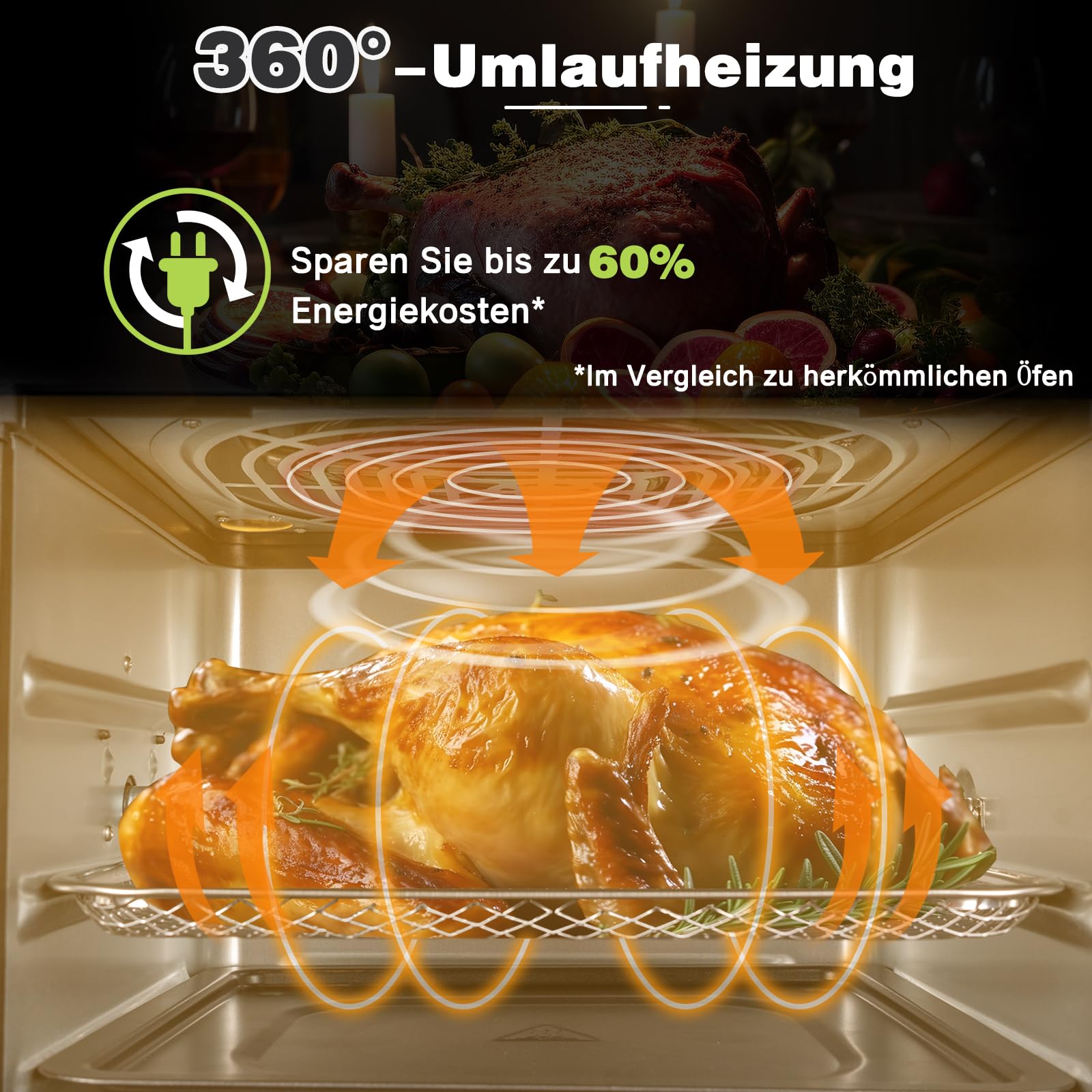 - 【Multifunktional】Es handelt sich um eine Sammlung von Funktionen einer Vielzahl von Küchengeräten: Elektrogrill, Toaster, Mikrowelle, Heißluftfritteuse, Auftaufunktion, Dörrautomat