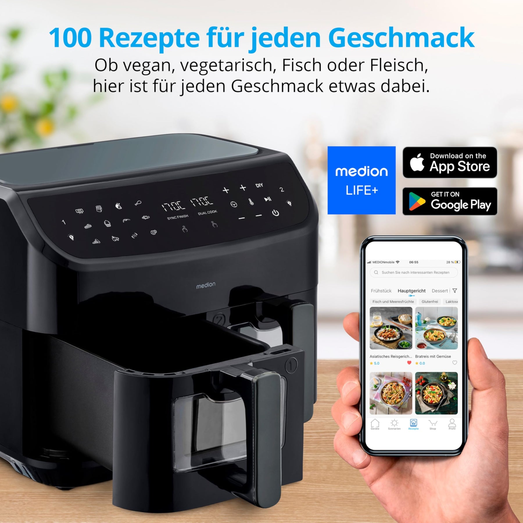 - Heißluftfritteuse P20 XXL (MD11760), 2 Grillgitter, Bedienungsanleitung