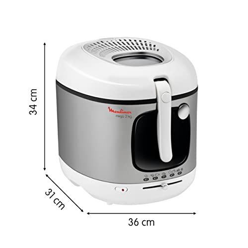 Mega XXL-Fritteuse mit dem größten Fassungsvermögen unter den Moulinex Fritteusen. In diesem Gerät können Sie bis zu 2 kg Pommes Frites auf einmal zubereiten: Ideal für große Familien (bis zu 8 Personen).