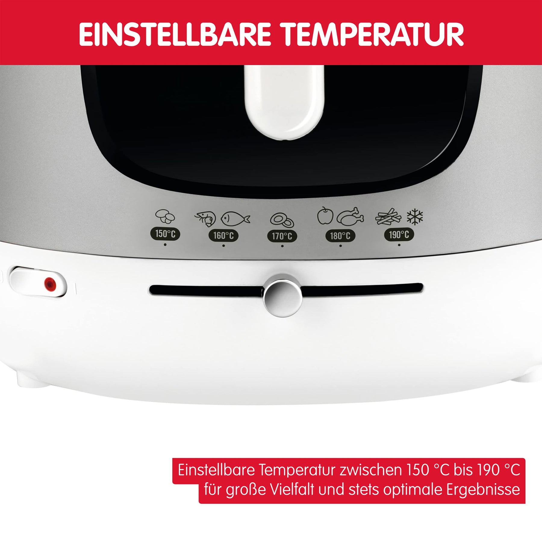 Dank des hoch effizienten Geruchsfilters können Sie Ihre Speisen bedenkenlos in der Küche zubereiten. Während des Frittiervorgangs kann der Deckel geschlossen werden, um Spritzer zu vermeiden. Gleichzeitig haben Sie durch das Sichtfenster freien Blick auf das Frittiergut. Praktische Funktion: Während des Frittiervorgangs kann der Korb von außen bewegt werden und der Deckel verfügt über ein automatisches Öffnungssystem. Die Temperatur wird über das einstellbare Thermostat zwischen 150 °C bis 190 °C reguliert, damit Ihre Zubereitungen immer optimal gegart sind. Sie und Ihre Familie werden begeistert sein.