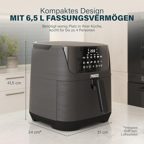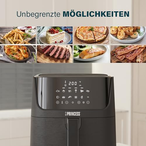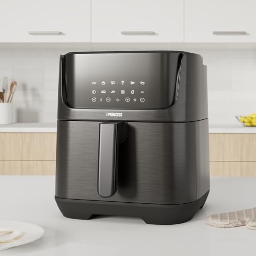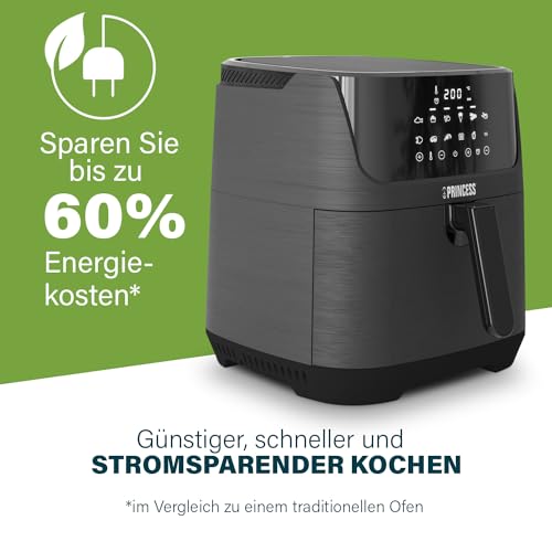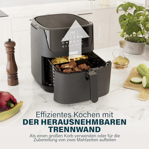 Princess Digitale Heißluftfritteuse – 6,5 L – mit herausnehmbarer Trennwand – 60 Prozent weniger Energieverbrauch – Digitaler Touchscreen – 12 Programme – Ohne Öl – Schwarz – 182061